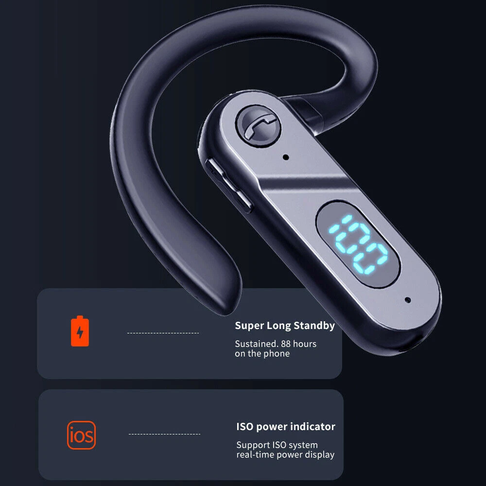 These Bluetooth earbuds are a game-changer! The waterproof design and secure earhook make them perfect for workouts, while the noise cancellation delivers crystal-clear calls and music even in loud areas. Bluetooth 5.2 ensures a stable connection, and the battery lasts forever—no more constant charging. Love the LED display for tracking battery life, and the bone conduction design keeps them comfy for hours. No earplugs mean no ear fatigue! Definitely worth every penny for anyone on the go.