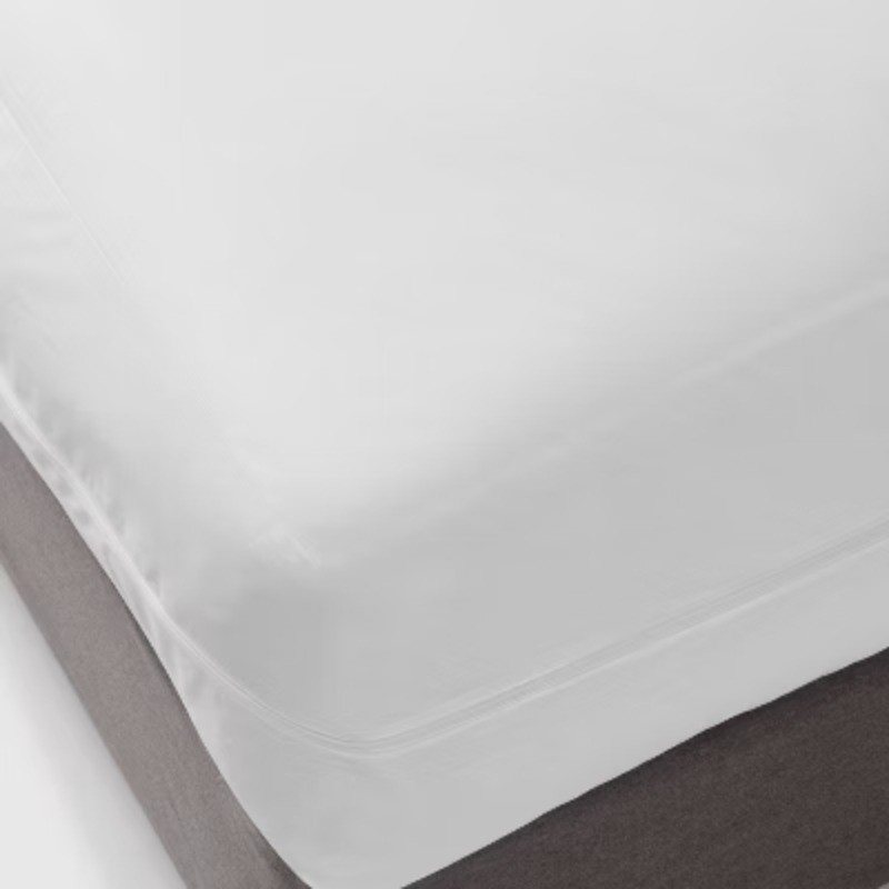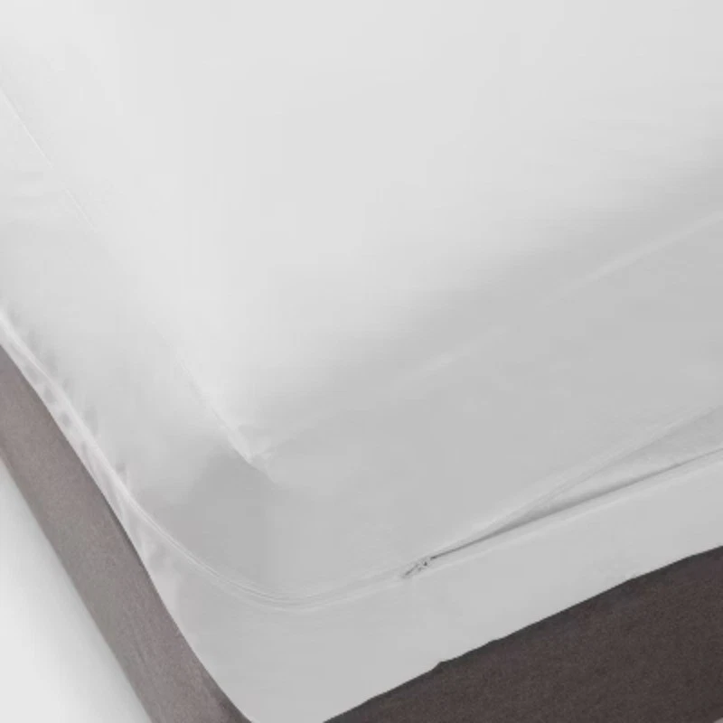 Description Help expand the life of your mattress with this Waterproof Zippered Mattress Protector from Room Essentials™. This white mattress protector easily matches your existing bedding and bedroom decor. Made from soft material, it features a waterproof surface to protect your mattress from accidental stains and spills. The zipper closure allows for easy removal of the cover for convenient cleaning. Room Essentials™: Everyday Value highlights Zippered mattress protector cover Waterproof construction protects your mattress from spills and stains Zipper closure allows for quick removal of cover for easy cleaning STANDARD 100 by OEKO-TEX® certified