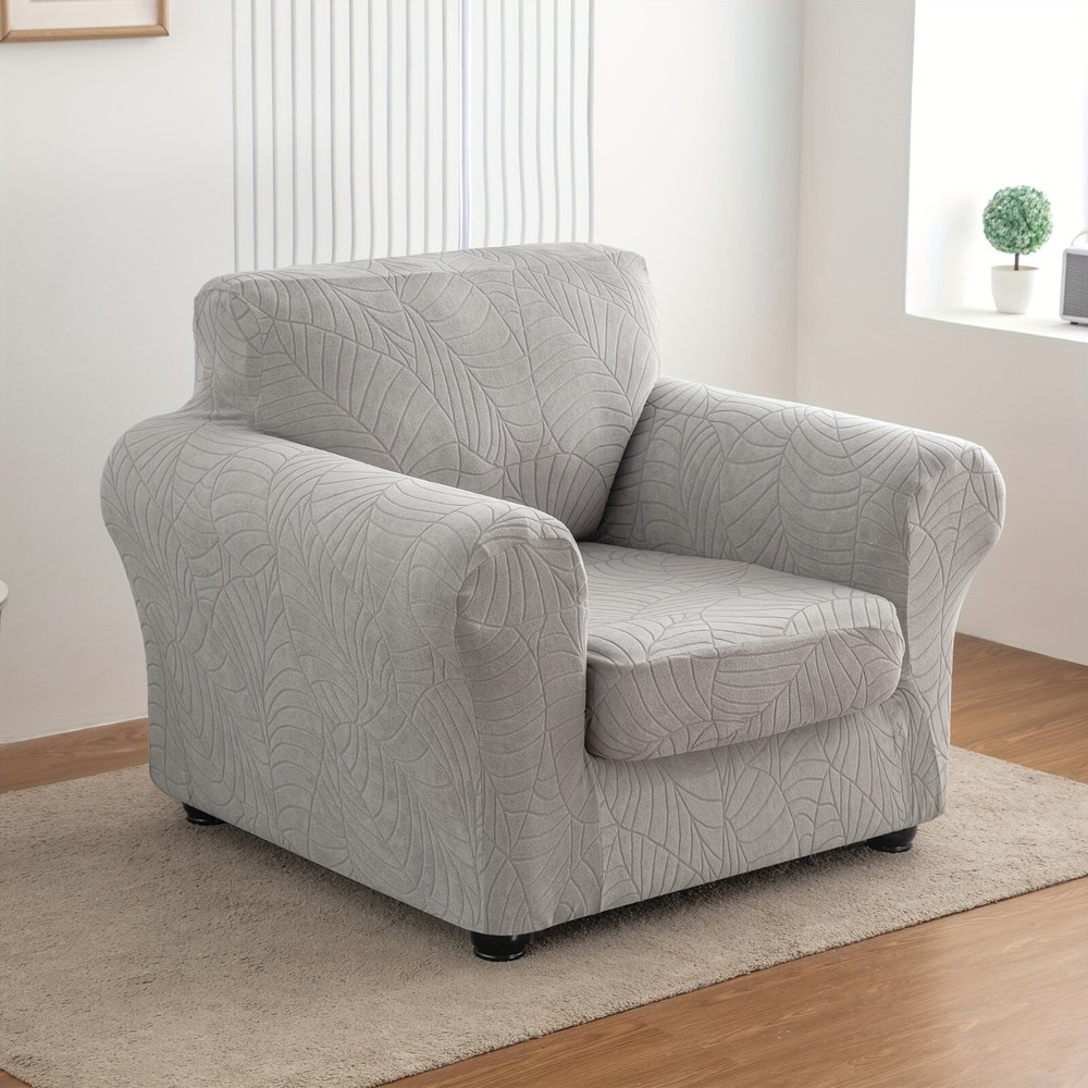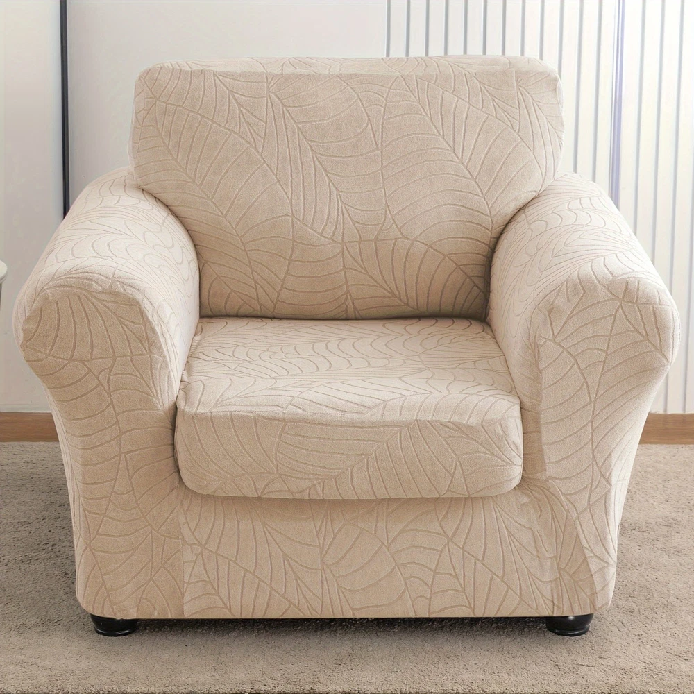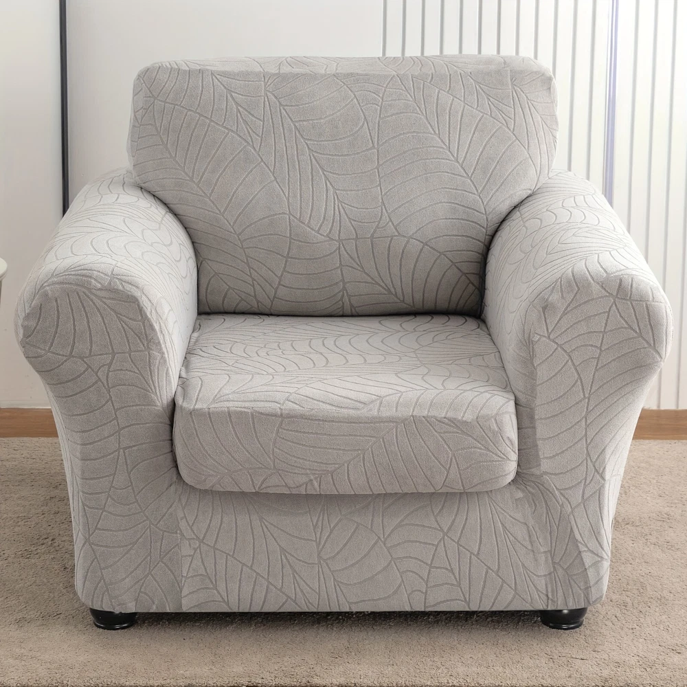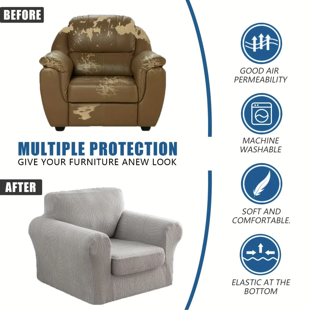 High quality material: the living room chair cover is made of 92% polyester and 8% spandex, elastic and durable; Soft and comfortable. Our versatile sofa covers are highly flexible and can be applied more flexibly to a variety of sofas such as T-shaped sofas, box sofas, high-back sofas, small and oversized leather sofas. The improved thick cloth is more durable. 2-piece set design: The chair cover is a 2-piece design, including a base cover and a cushion cover. Covering the cushion separately not only tucks excess fabric under the cushion, but also solves the problem of rebound. Non-slip sofa cover is suitable for sitting between 31-49 inches wide. Measure your furniture before buying. Comprehensive protection: The universal slipcover provides 360-degree protection for your sofa from everyday stains, accidental tears, scratches or bites. Sofa furniture cover can also turn your old, worn sofa into the centerpiece of your living room. Our sofa slipcovers are especially suitable for families with children and pets, saving you money by extending the life of your sofa. Stay in place: The elastic band is constructed with a thick elastic band that covers the bottom edge well for full protection. Strong elastic edges at the bottom keep your slipcover in place without sliding and tucking in. Individual cushion covers help the furniture stay tight, won't snag, and won't wrinkle. This non-slip sofa cover looks upscale and stylish, providing a decorative purpose for your sofa and living room while reflecting the original shape of the furniture. Installation and maintenance: Furniture protective covers with cushion covers are very easy to put on and take off. Refer to the installation guide in our picture, you can complete the installation by one person in a short time. This freestanding slipcover is easy to care for, simply cleaning the dirty cushion cover instead of the entire furniture set. Can be gently washed in cold water, do not bleach. 观。请勿使用漂白剂;单独用冷水轻柔洗涤。