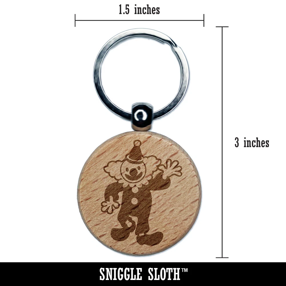Waving Clown Circus Carnival Engraved Wood Round Keychain Tag Charm
