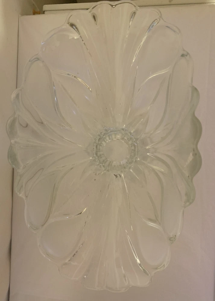 Wavy Frosted & Clear Led Crystal Fan Shaped Fruit Bowl 7.5" High