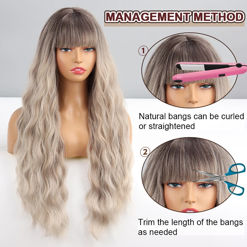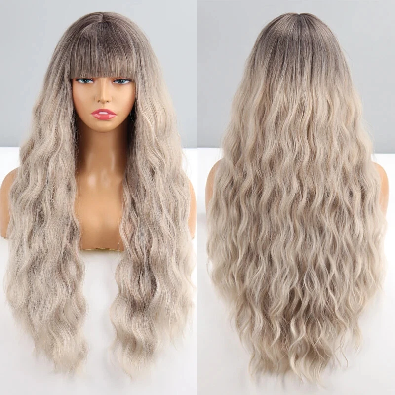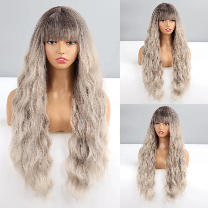 This wavy ombre wig is a total game-changer! The blend of grey and blonde looks stunning, and the soft bangs frame the face perfectly. The curls are luxurious yet natural, and the synthetic fibers feel surprisingly soft. It’s lightweight, easy to style, and stays in place all day—perfect for cosplay or just rocking a bold new look. Love how realistic and voluminous it is without being bulky. Definitely worth it!