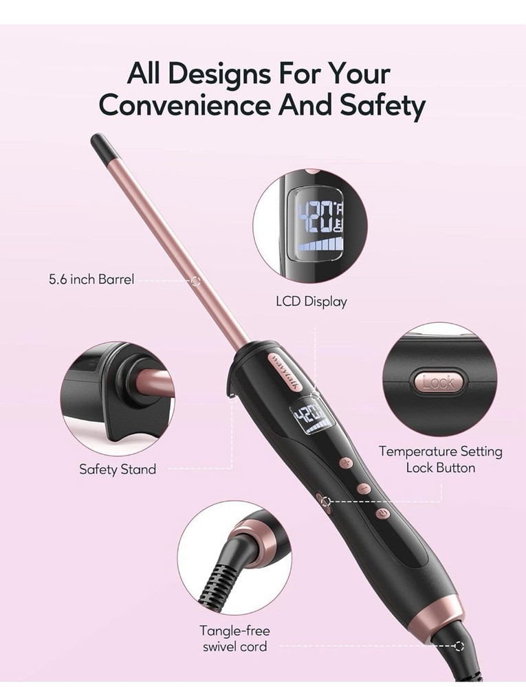 Wavytalk 3/8 Inch Rose Gold Curling Iron Wand for Short & Long Hair