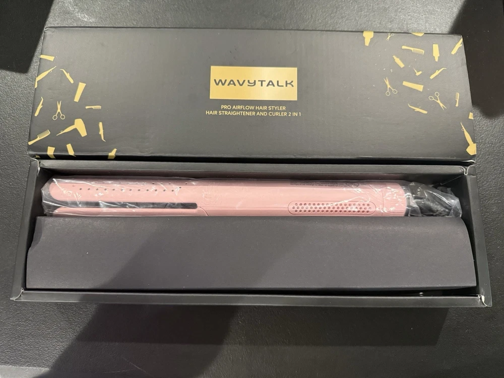 Wavytalk Pro Airflow Hair Styler Hair Straightener And Curler 2 In 1 pink. Opened box. The product has been taken out of the box and tested to ensure it works properly. It can show minimal signs of use (cord untangled, etc) from the testing process. Box may show signs of damage from shipping.