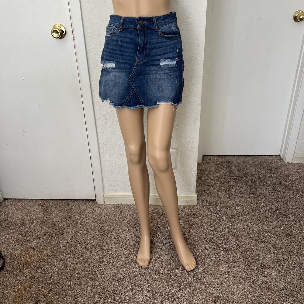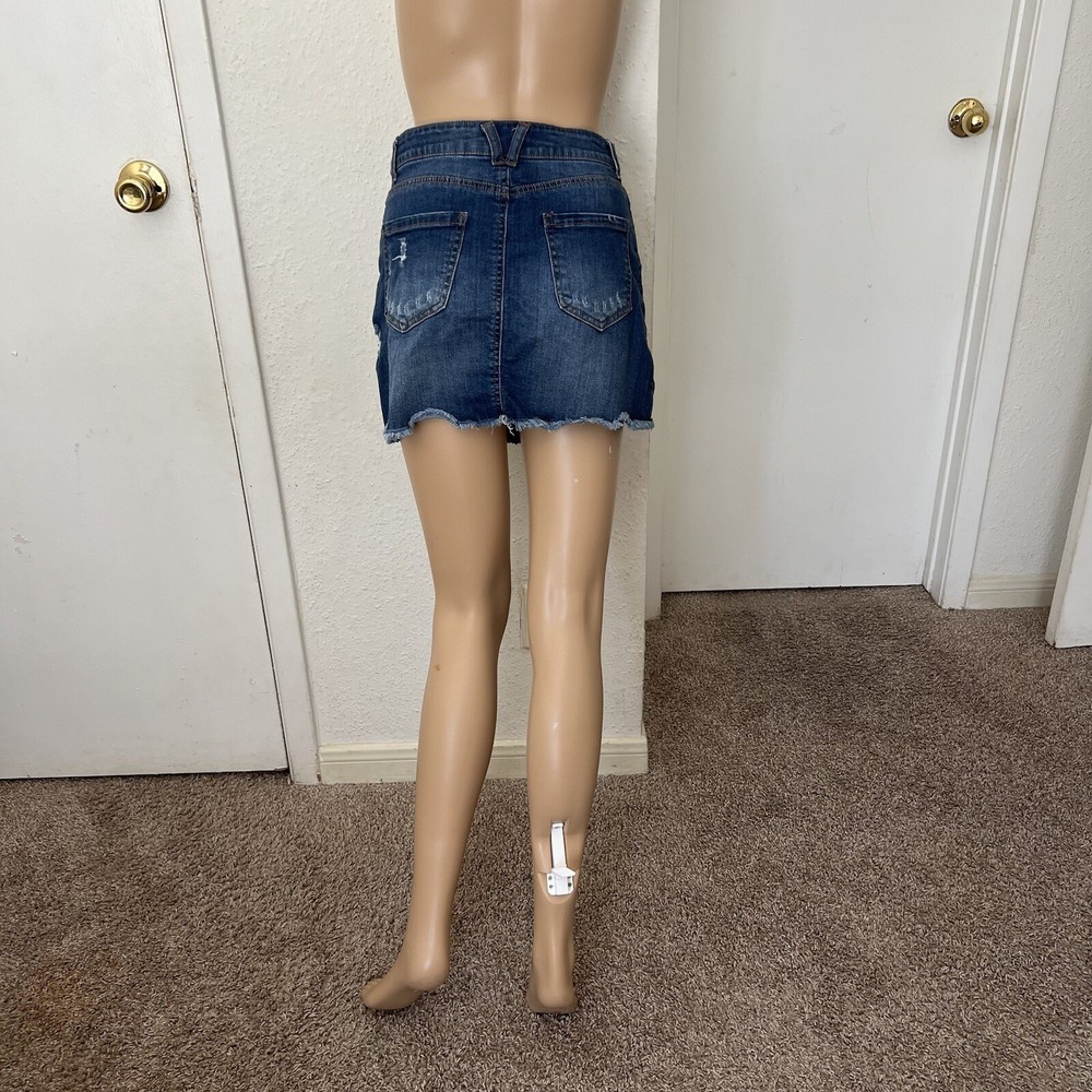 This is a stylish and casual denim skirt by WAX JEAN for women in size S. The skirt is designed in a mini length with a cutoff style, giving it a trendy and distressed look in a beautiful blue color. Made from a blend of spandex and cotton, the skirt offers a comfortable fit and is machine washable for easy care. Perfect for the summer and spring seasons, this zip closure skirt is a versatile addition to any wardrobe, suitable for various casual occasions.