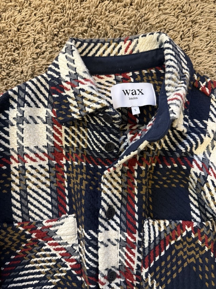 Wax London Men's Plaid Button Jacket Spread Collar Navy White Red Olive Size S
