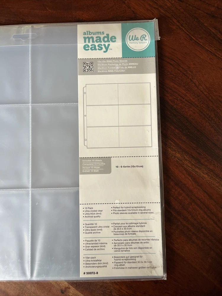 We R Memory Keepers Ring Albums Made Easy #50072-8 Ring Photo Sleeves 10 pack 6”x4” horizontally