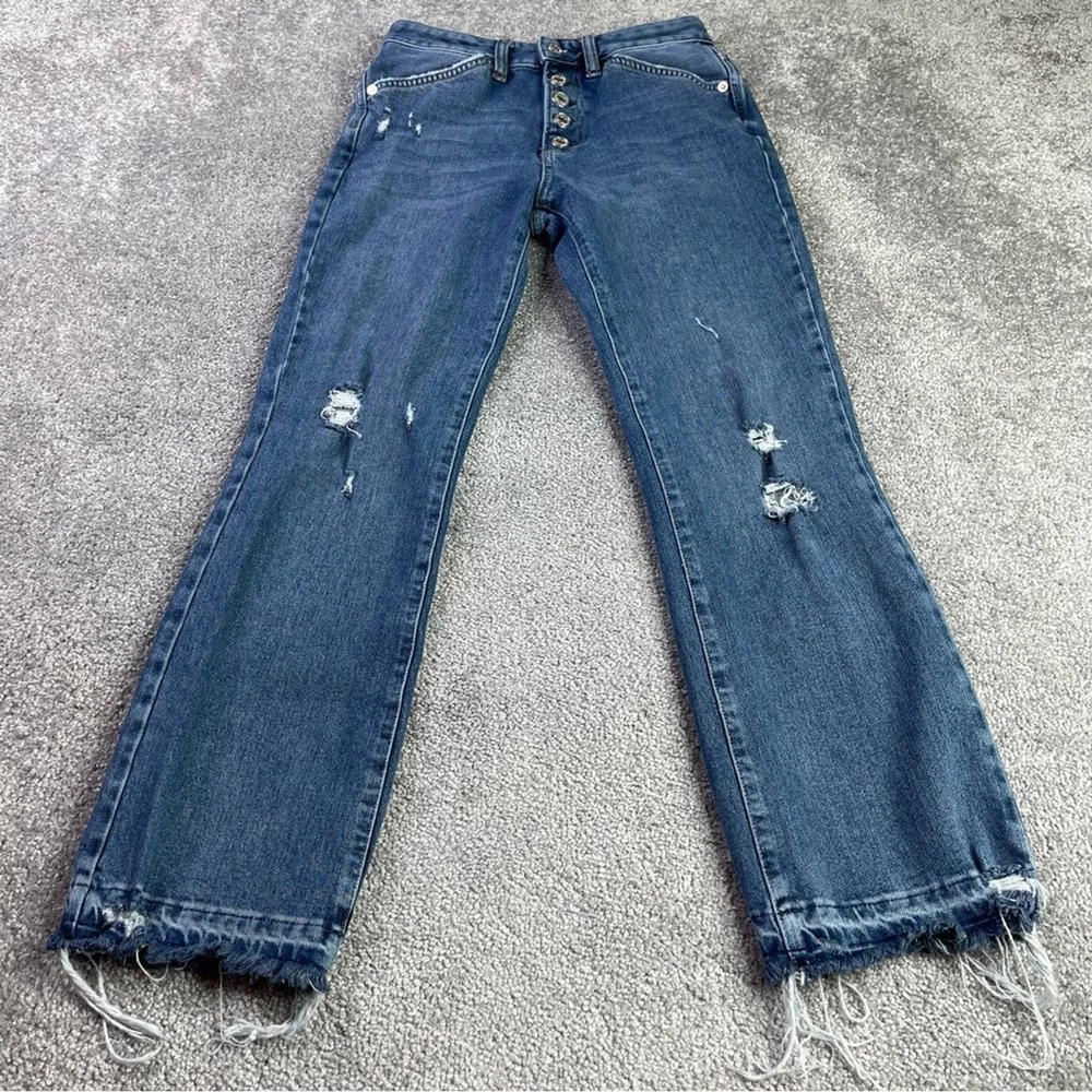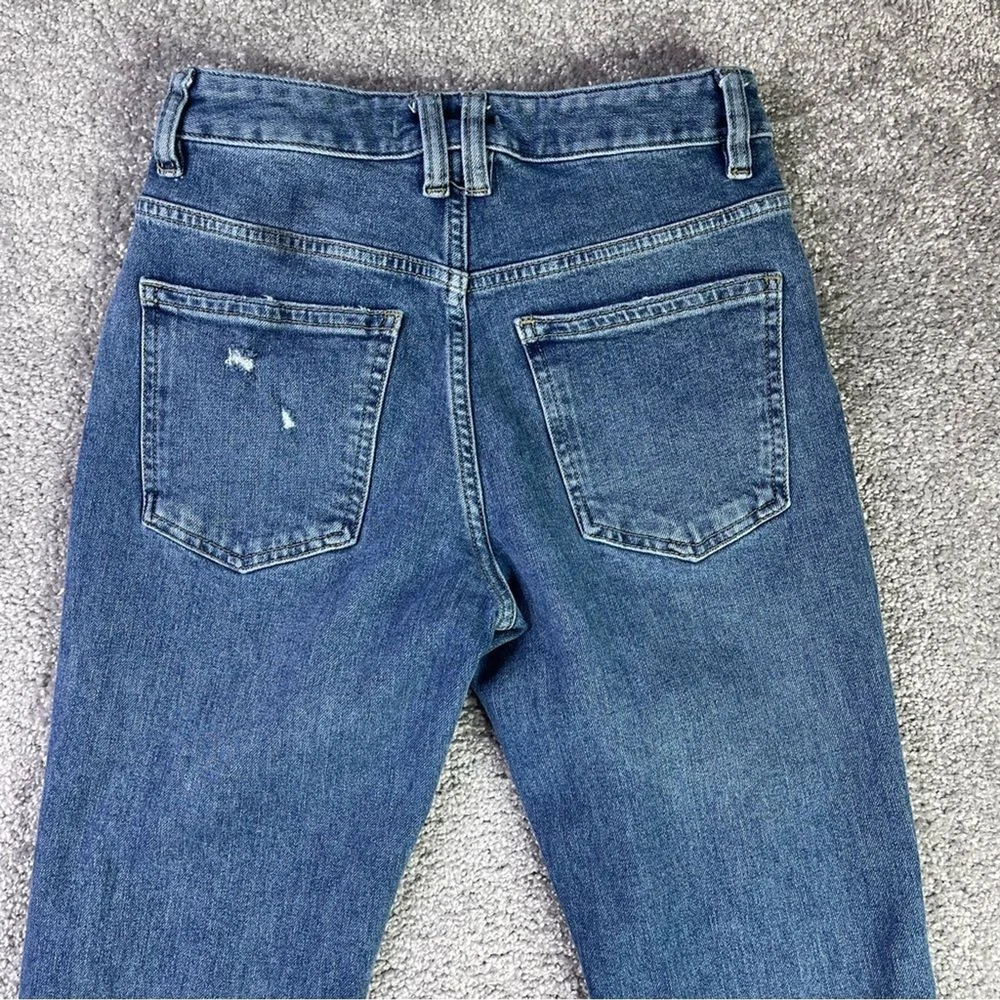 We The Free Jeans Women's 25 Blue Skinny Mid-Rise Frayed Hem Ripped Button Fly