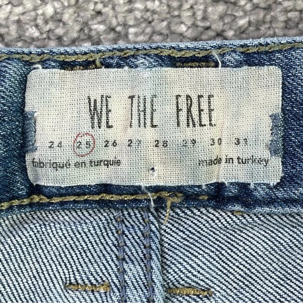 Country/Region of Manufacture: Türkiye Vintage: No Accents: Button Material: Cotton Blend Inseam: 25.5 in Handmade: No Features: Distressed, Pockets, Stretch Pocket Type: 5-Pocket Design Department: Women Waist Size: 25 in Pattern: Solid Style: Skinny Seller Notes: “In excellent, pre-owned condition with no flaws to note.” Size: 25 Color: Blue Rise: Mid (8.5-10.5 in) Type: Jeans Fit: Regular Size Type: Regular Garment Care: Machine Washable Closure: Button Brand: We The Free Personalize: No Fabric Type: Denim Fabric Wash: Medium Season: Fall, Spring, Summer, Winter