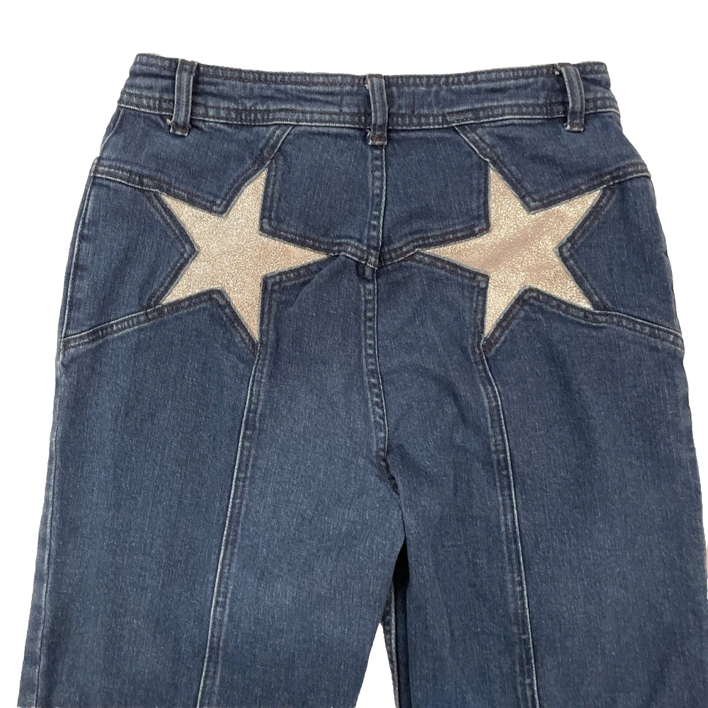 We the Free People Jeans 30 Firecraker Flare Silver Patch Star Back Pockets Style Profile/Aesthetics: retro Y2K Description/Specifics High Rise Medium Wash Flare Leg Stretch Silver Patch Back Pocket Button Zip Fly Color: Blue Denim Materials: 99% Cotton, 1% Elastane Washing Instructions: Dry Clean Measurements : Please see photos for approximate measurements taken laying flat (in inches), be aware that tagged and actual measurements may differ on pre-owned clothes due to prior wash or wear so please compare measurements to clothes you already have to ensure proper fit! Tagged Size: 30 Actual approximate measurements (inches), see pictures Waist: 29 Inseam: 32 Condition: This item has no observed holes, tears or stains. Please see photos for details, color may vary due to lighting! All preowned clothes have been cleaned prior to shipping Please reach out with questions!