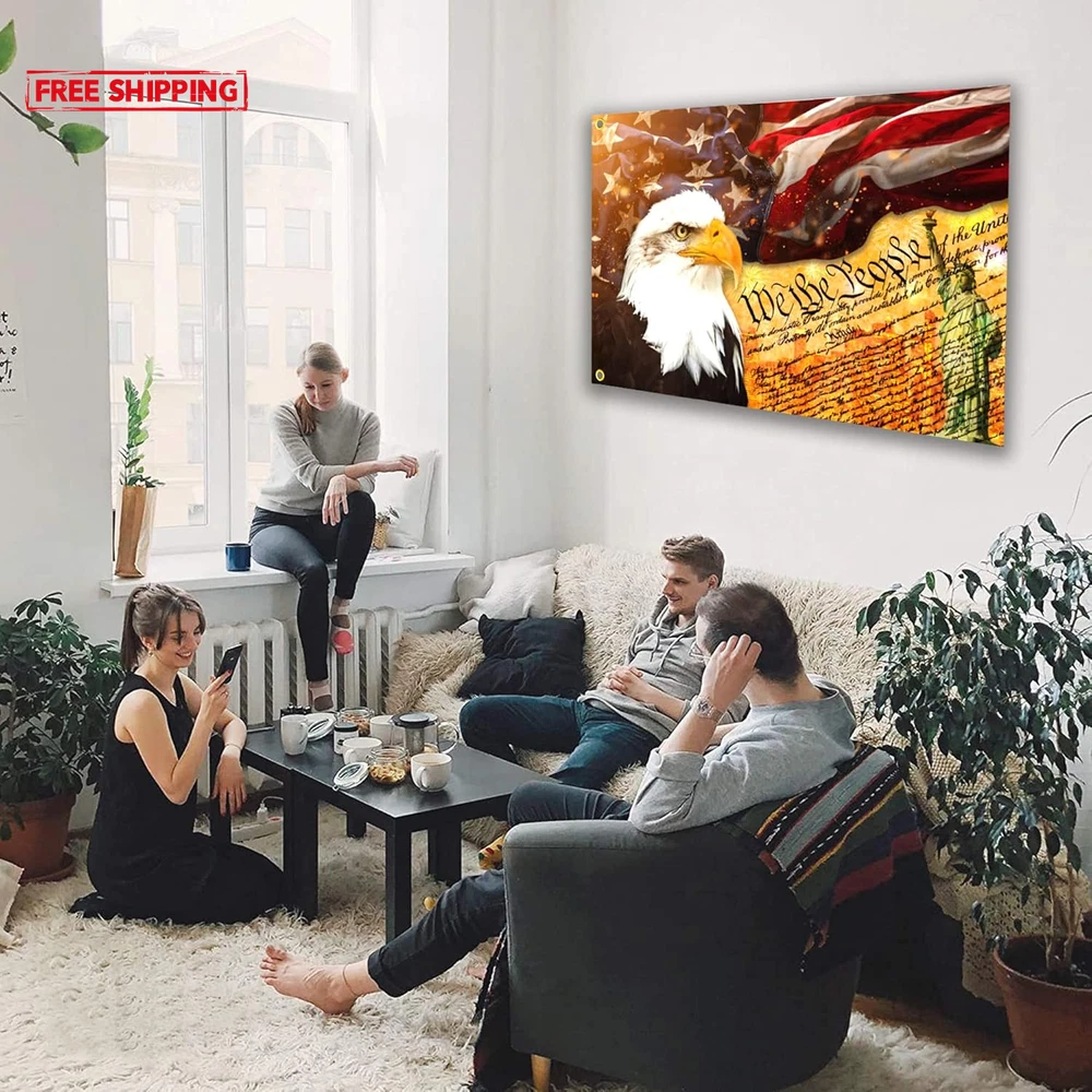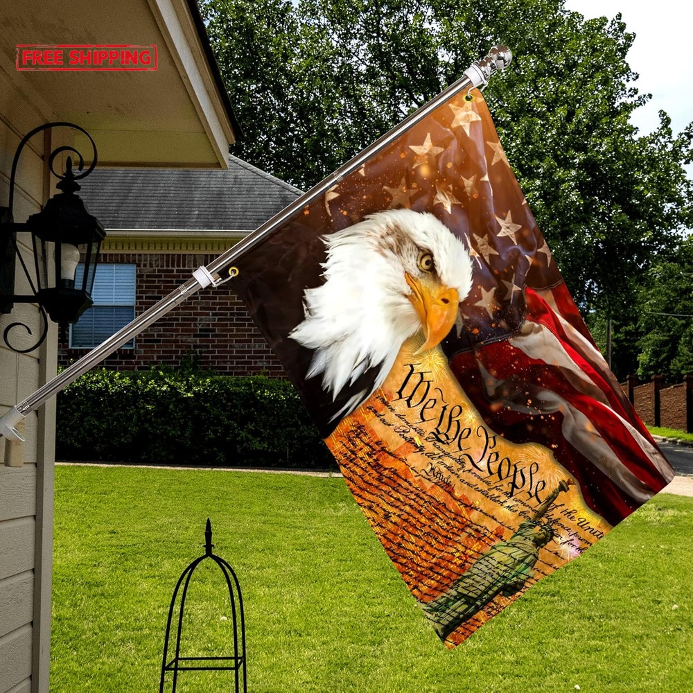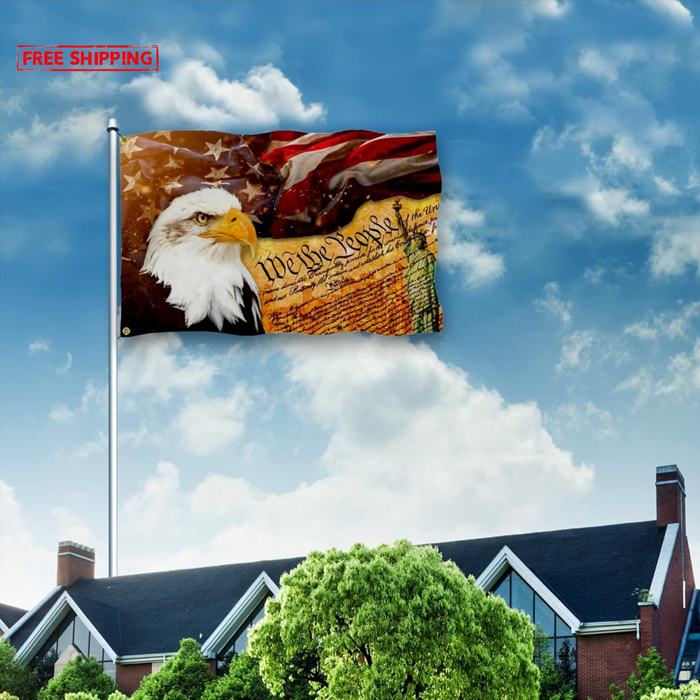 SHOW YOUR FAITH: Demonstrate your strong faith in the power of the divine with this stunning American Flag With An Bald Eagle On It with an eye-catching design. DURABLE: This we the people 1776 flag 3x5ft outdoor 100% polyester flag stands out because of its double-sided mirror printing, strong material and waterproof and UV-resistant coating, long-term use will not cause the flag to fade, and its ability to withstand strong wind and rain. AMERICAN EAGLE FLAG MULTI-FUNCTIONAL: Whether you are hanging the we the people USA flag 3x5 outdoor is double sided on your wall, waving it during a parade, displaying it in your house/yard, or using the freedom patriotic flag as a unique holiday gift, this american flag with statue of liberty is perfect for anyone occasion. SYMBOLIC AND INSPIRATIONAL: The combination of the 1776 we the people flag and the American flag creates a powerful visual statement of your devotion to God and country. Also a for patriotic flag is the best choice for outdoor garden decoration on 4th of July, independence day, memorial day, Labor Day, Easter, Thanksgiving, Good Friday, Halloween, Christmas or any other day you want to celebrate American. EASY TO INSTALL: With two brass grommets, you can set up this 1776 american July 4th yard outdoor flag banners for home on any flagpole in seconds, and its vibrant colors stay vibrant for a long time. (Please Note: Flagpole not included). Flag for Patriotic If you are looking for flags for parades, festivals or parties, especially during holidays like 4th of July or Memorial Day Decorations or any other day you want to celebrate America. We The People Patriotic Flag 3x5 is the choice of many people, the unique design and bright colors will attract attention, ideal way to fully display your patriotism!