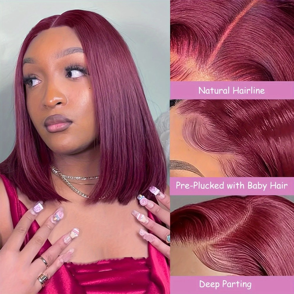Specifications: Material: 100% Human Hair Weight: 135g-175g length: 8-16 Inch Texture: Straight hair Hair Tape: Brazilian hair,Burmese hair,Indian hair,Peruvian hair Hair Style: 6x4 Glueless Human hair Bob lace wig Hair color: 99J Lace Color:Transparent lace Features: l No Chemical,No Shedding,No Tangle,No Smell . Shiny,Smooth,Silky Hair l Double Weft , Factory D irect S ales l Cap: Average cap size22.5inch,4combs in the cap to fix easily. l Lace Part: 6x4 Glueless Lace Wig Pack Content: 1 * wig+1*wig cap