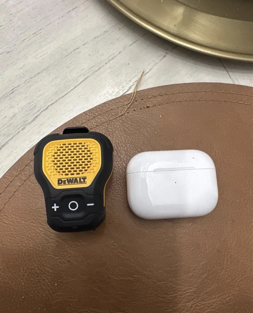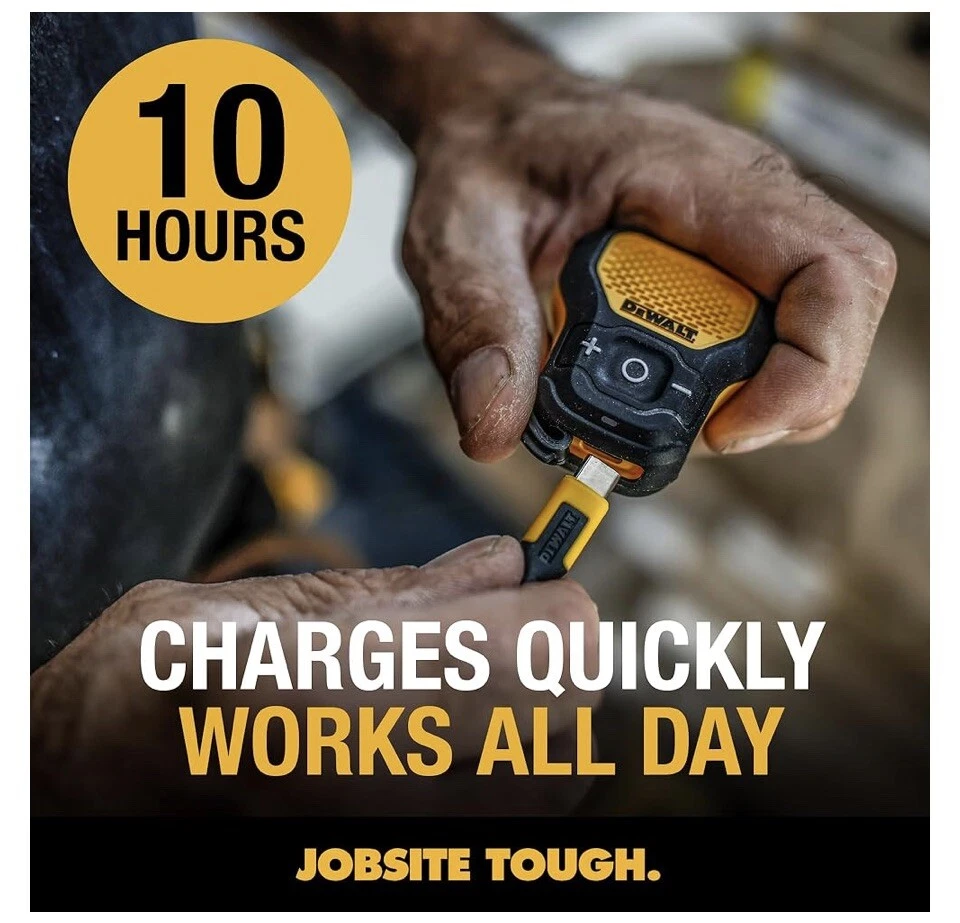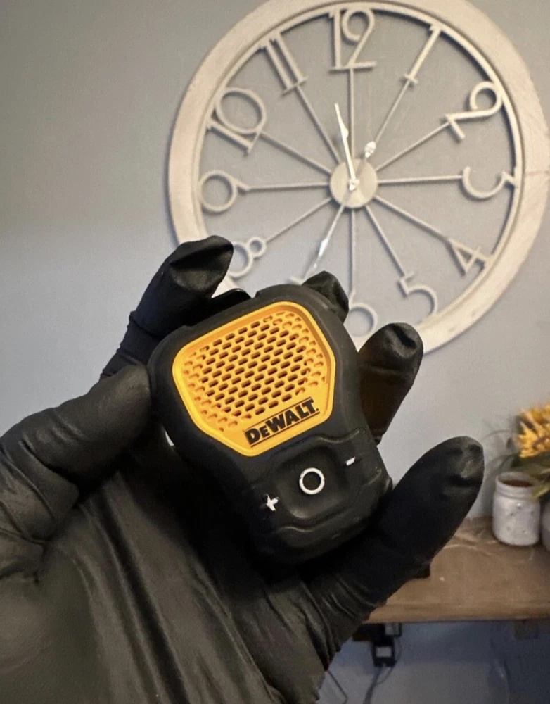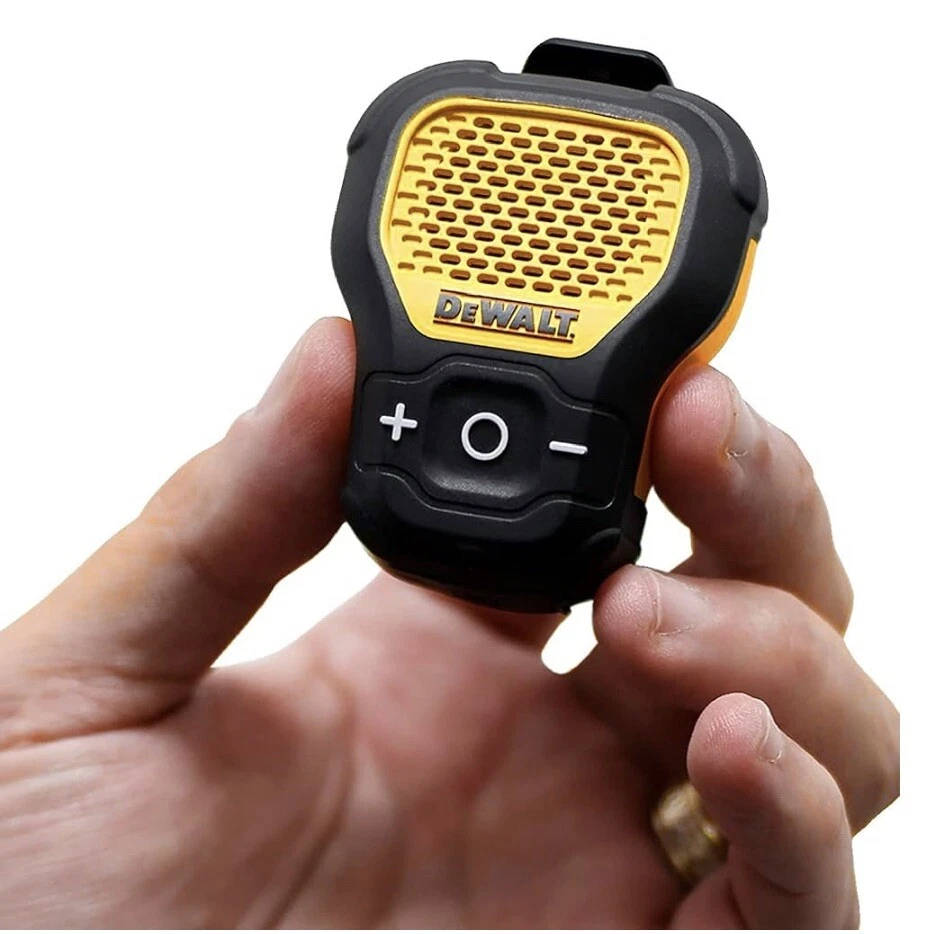 Small Speaker, Same Pro Audio Sound: This loud Bluetooth speaker plays music and takes calls with ease in a pocket-sized design, giving you huge sound from a small device Improved 4x Stronger Clip for Ultimate Durability: Easy-open clip for one-handed operation allows you to affix portable bluetooth speaker anywhere Ultra-Lightweight, You'll Forget You Have It On: Weighing less than 2 oz, this mini speaker makes the perfect add to your workday uniform or gardening attire Now Free-Standing with Added Footer: Provides increased stability and enhances the overall usability of this work speaker so you can sit it on a tool bench or ledge Protected Against Dust/Water: Outdoor speaker comes with a handy carry pouch and features an IP56 rating for dust and water resistance so it can go from part of your work accessories to your lake accessories in an instant