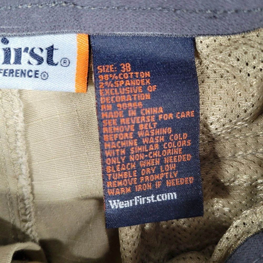 Material: Cotton, Spandex Occasion: Business, Casual, Formal, Travel, Workwear Waist Size: 38 in Department: Men Style: Cargo Fabric Type: Canvas Theme: Outdoor Brand: Wearfirst Seller Notes: “in good condition” Fabric Wash: Dark Pattern: Solid Size: 38 Character: Fisherman Country/Region of Manufacture: China Fit: Regular Size Type: Regular Vintage: No Front Type: Flat Front Features: Belt Loops, Pockets, Stretch Color: Beige