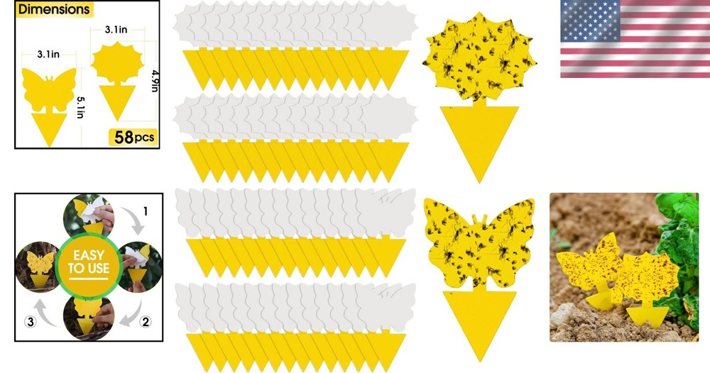 Weather-Resistant 58 Pack Yellow Sticky Traps - Elegant Bug Catcher Solution ‹ › ‹ › ‹ › ‹ › ‹ › ‹ › ‹ › ‹ › ‹ › Weather-Resistant 58 Pack Yellow Sticky Traps Elegant Bug Catcher Solution Effective Insect Control: Bright yellow sticky traps utilize top-grade glue to catch gnats, whiteflies, aphids, midges, fruit flies, and other small flying insects at an impressive capture rate. Indoor & Outdoor Plant Protection: Effectively safeguards plants from insects, reducing flies around homes, gardens, patios, greenhouses, and windowsills with a long-lasting impact. Keep your plants safe and pest-free, no matter where they are. Safe & Odorless: Crafted from non-toxic materials, ensuring safety for children, pets, and plants. No chemical smells or odors to disturb your cherished environment. Double-Sided & Easy to Use: Sticky on both sides for maximum capture from all angles. Simply peel off the film and insert into soil or hang using the included wire for hassle-free use. Weather-Resistant: Waterproof and UV-resistant design guarantees reliable performance under various indoor and outdoor conditions. Décor-Friendly: Includes elegant flower and butterfly shapes that seamlessly blend into your plant décor, enhancing rather than distracting from your space. When to Use: Getting new plants. Changing potting soils. Moving outdoor plants inside. Preventing indoor pests as a routine measure. Great Value & Support: Comes with 58 high-quality traps (29 flower & 29 butterfly) for economical and effective pest control. Backed by 24/7 U.S. customer service, offering satisfaction guarantees with easy return or refund options. Why Choose Our Yellow Sticky Traps? If you're seeking a sophisticated yet practical solution for pest control, look no further than our Weather-Resistant Yellow Sticky Traps. Their elegant design not only enhances your living space but ensures the safety and health of your plants. With non-toxic materials and a commitment to quality, you can trust that every trap is effective and odor-free. Suitable for both indoor and outdoor use, these traps are your ultimate companion for maintaining a pest-free sanctuary. Don’t let pests ruin the beauty of your plants. Order your 58 Pack Yellow Sticky Traps today for an elegant solution that truly works! Shipping Free & Fast Shipping - We offer free shipping to most of the USA with a normal delivery time of 3-7 days. However, due to the current situation, additional delivery time (up to 3 weeks) may be required for some items. Alternative Carriers - We may use alternative carriers (e.g. USPS, FedEx, UPS, etc.) to ensure your package arrives safely and on time. Due to the use of multiple carriers, we are unable to provide a tracking number automatically. Handling Time - Orders are processed and shipped within 1-2 business days of receiving cleared payment. Shipping Restrictions - Shipping to Alaska, Hawaii, Puerto Rico, Guam, and other US territories may incur shipping charges or delivery restrictions. Please contact us before ordering, or your order can be refunded/cancelled. State Restrictions - There may be restrictions based on your state of purchase. For example, certain items may not be shipped to California due to state regulations. Contact for Tracking Updates - If you require tracking updates or have any concerns about the delivery of your order, please feel free to contact us, and we will be happy to assist you. Return 30-Day Hassle-Free Returns - We want you to be completely satisfied with your purchase. If you are not, you can return the item within 30 days of receiving it for a full refund or exchange. Easy Return Process - To start a return, simply contact us and we will provide you with a prepaid return shipping label and detailed instructions. Restocking Fee - There are no restocking fees for returns. However, the buyer is responsible for return shipping costs if the return is not due to a seller's error. Refund Processing Time - Refunds will be processed within 5 business days of receiving the returned item in its condition. Payment We accept all major credit cards, PayPal, and Apple Pay for your convenience. Your payment information is secure and encrypted to ensure a safe and seamless transaction. Please complete your payment within 3 days of purchase to avoid any delays in shipping. Feedback Your feedback is extremely important to us. We strive to provide the best products and customer service possible. If you are satisfied with your purchase, please take a moment to leave us a positive review. If you have any concerns or issues with your order, please contact us before leaving negative feedback. We are committed to resolving any problems and ensuring your satisfaction. Contact Us If you have any questions or concerns, please feel free to out to our customer support team. You can contact us through the eBay messaging system. We are available Monday to Friday, 9:00 am to 5:00 pm EST, and we will do our best to respond to your inquiry within 24 hours. Buy it now and enjoy a pleasant shopping experience! Unit Quantity: 58.0 count Pest Type: Fly,Gnat,Whitefly,Aphid,Midge,Fruit Fly Features: Double Sided,Odorless,Pet Safe,Non-Toxic,Kid Safe,Easy to Use,Weather-Resistant,Décor-Friendly Material: Plastic,Paper,Glue Type: Lamp Power Source: Battery Color: Yellow Number in Pack: 58 Voltage: No Power: No Item Weight: 0.3 pounds