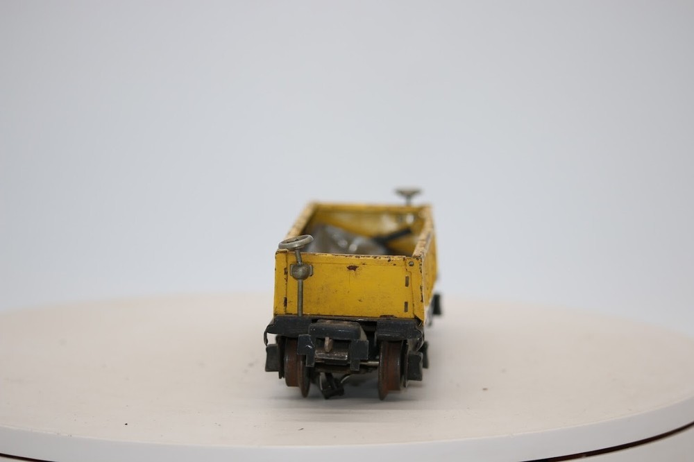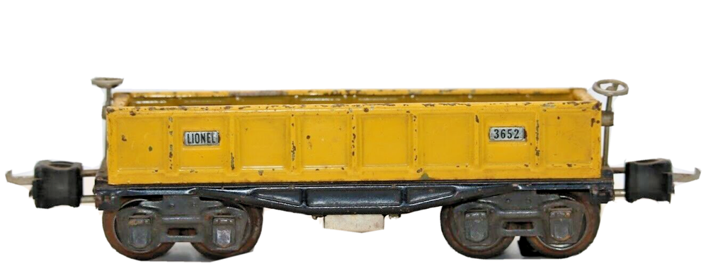 Lionel 3652 Operating Gondola/Dump Car from 1939-42. SKU#006192 This operating dump car features tinplate construction, metal trucks, wheels, a brakewheel and couplers. Look closely at the pictures to see further details. We ships USPS PLEASE see photos for detailed condition!! There may be pieces that are missing or broken including, but not limited to, couplers, brake wheels, steps, ladders, railings, etc. May need detailed cleaning. PLEASE LOOK AT THE PHOTOS CAREFULLY BEFORE PURCHASING!! If you are purchasing more than one item from us and would like combined shipping, PLEASE request an adjusted invoice from us while still in the cart and BEFORE paying. Ebay does not usually calculate combined shipping accurately and you might get overcharged. Please be aware that when we photograph items, we use lighting that will show the details well. Although we try to present the product as accurately as possible, the lighting may affect the overall look of the item by appearing lighter/darker or possibly a different hue than the actual item. Depending on the type of lighting you have in your home, there may be some differences between the photos and the actual item. If this is a concern of yours, please feel free to request additional photos made in natural lighting or ask for a more detailed description of the item PRIOR TO PURCHASE! PLEASE NOTE: We greatly appreciate your interest in our item for sale. We look forward to a pleasant, quick and satisfying transaction for everybody, so please note the following information before bidding. Thank you! ITEM DESCRIPTIONS: * We will try to describe items well and provide plenty of photos. Please review these carefully before bidding or purchasing. * Only the items pictured and described are what you will receive when purchased. * We will occasionally offer an item clearly marked "AS-IS". This means that we are not sure if it works because we are unable to test it for whatever reason. We will offer these at a discounted price then a similar "working" item. It is possible that these items will work fine, but it also is possible that these items are more useful for their parts. Please only bid on or purchase these items if you are well aware of this, as we will only provide refunds of actual item price (no shipping cost refunds) for these items. * If you have any questions that aren't addressed by the descriptions or photos, please feel free to ask before you bid. SHIPPING: * We usually do not offer shipping to international addresses, but ARE WILLING TO TAKE CONSIDERATIONS. * We try to pack items as carefully as possible, but damage may occur during shipping. If you receive an item that was damaged in shipping, please contact us and we will work with you to resolve the problem. * We will combine shipping costs for all items the same buyer purchases from us within 2 days. Please wait to pay for items until you're done shopping with us. Please contact us if you're expecting to buy more items from us, or to have us adjust the shipping costs. * We will usually ship items out within 24 hours of payment being received Sunday through Friday at noon. We will notify the buyer if there will be a delay in shipping for some reason. Please allow additional time for holidays and weekends when the post office is closed. If payment is received after noon (EST) on Friday, the item might not be shipped until the following Monday. * We do try to recycle shipping materials as much as possible. RETURNS: We abide by eBay's Money Back Guarantee. We definitely want our customers to be happy with their purchase! You may return an item within 30 days of receiving it with the following guidelines: * If the item is defective or damaged (unless we clearly marked the listing "AS-IS"), the buyer will receive a full refund after the buyer returns it and it is received by us. Customers who falsely claim their item is defective, damaged, or not as described in order to receive a full refund and free return shipping will be permanently blocked from making future purchases from us. * If the item is as described (including "AS-IS" items) and the buyer decides for any other reason than defective/damaged to return it, only the actual price of the item will be refunded once it has been returned and it is received by us. The buyer will be asked to pay all original and return shipping charges. This includes all reasons other than defective/damaged, including wrong size, wrong type, changed mind, etc. All "AS-IS" items will fall into this category of return. Please make sure the item is what you want before purchasing it. * Please contact us before initiating a refund request. FEEDBACK: We always leave feedback at the end of transaction. We consider the transaction to be over when we receive feedback from the buyer confirming the item arrived satisfactorily. If you are unsatisfied with your purchase please contact us before leaving neutral or negative feedback. WE APPRECIATE POSITIVE FEEDBACK IF YOU ARE SATISFIED WITH YOUR PURCHASE! THANK YOU FOR YOUR INTEREST IN THIS ITEM!