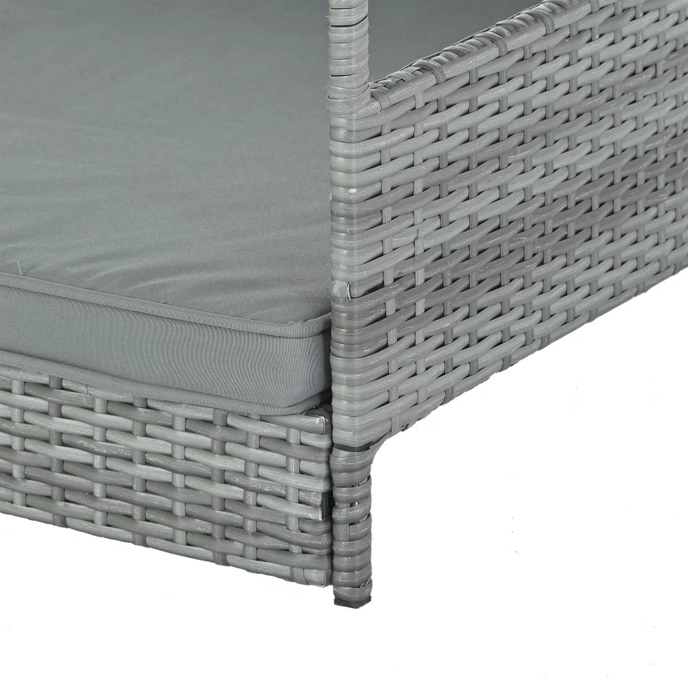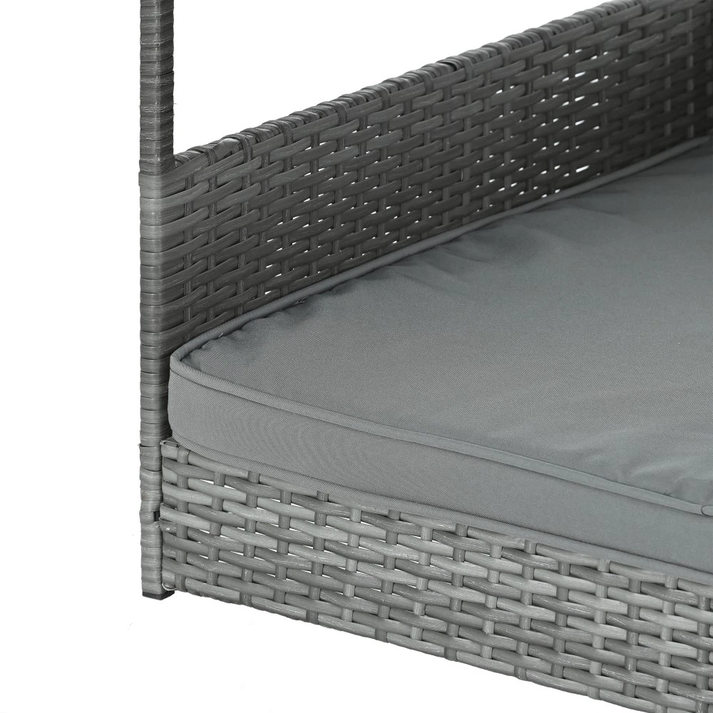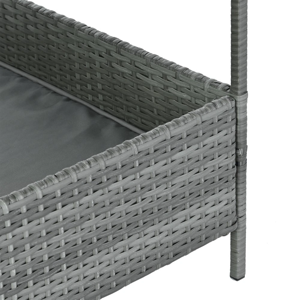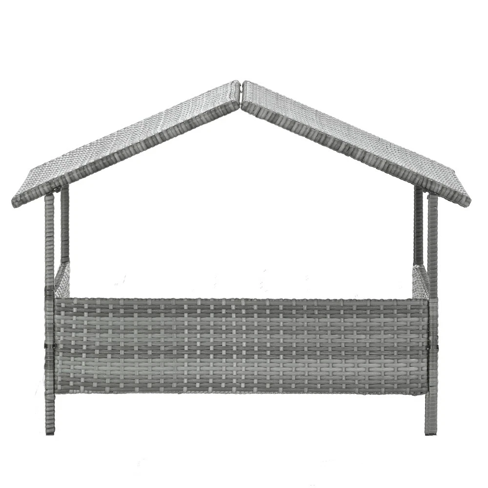 Weatherproof PE Wicker Dog Bed with Canopy for Outdoor Pets