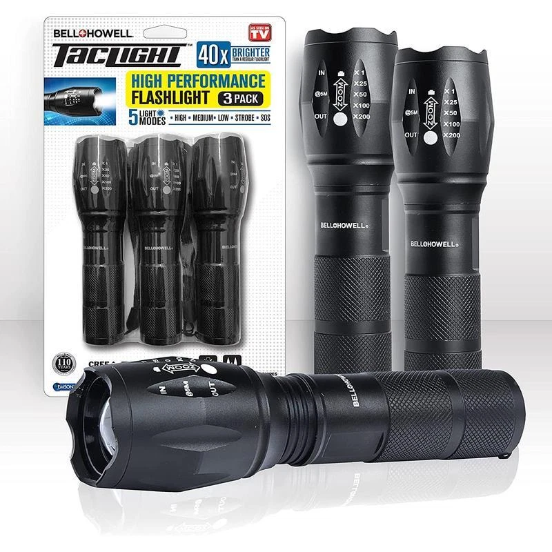 Triple Strength Glucosamine Chondroitin Tablets Dietary Supplement 340 Count 38.03 USD 40.46 USD Free shipping 6% off Portable Training Kit for 9mm Dry Fire Laser Training System for Target Practice 109.99 USD Free shipping 36 Mega Rolls 2-Ply Toilet Paper Soft Strong Septic Safe Bulk Pack 11520 Sheets 29.14 USD 31.0 USD Free shipping 6% off Metal Storage Cabinet with Doors and Shelves 5 Tier Metal Pantry Closet Cupboard 175.47 USD Free shipping 118" Wide Baby Gate Metal Safety Playpen Fireplace Fence for Toddler/Pet/Dog 129.57 USD Free shipping 6 Foot Bi-Fold Plastic Folding Table Black Dinning Table Portable Seats 8 Adults 44.21 USD 47.03 USD Free shipping 6% off Fan Bedroom Oscillating Standing Fans DC Motor 80ft Air Circulator 8 Speeds New 79.1 USD 84.15 USD Free shipping 6% off 4 Drawer Unit Plastic Garage Cabinets Storage Large-Capacity Flat Organizer Gray 95.17 USD 101.25 USD Free shipping 6% off Ergonomic Gaming Recliner Adjustable Footrest PU Leather Comfortable Sofa Chair 229.46 USD Free shipping 17 Inch Sound Bars for TV Bluetooth W/ Subwoofer Surround System Wall Mountable 72.37 USD 76.99 USD Free shipping 6% off 1 HP Automatic Submersible Water Pump 3450 GPH Sump Pump Pool Flood Basement New 41.35 USD 43.99 USD Free shipping 6% off 2ft Heavy Duty 3 Outlet Extension Cord 15A Indoor Outdoor Power Adapter New 15.95 USD 16.97 USD Free shipping 6% off Product details Taclight is made from air-craft grade aluminum and can withstand extreme temperatures from freezing to boiling. It is water-proof and shock resistant. Taclight has built-in zoom function and high-powered bulbs are 40x brighter than your regular flashlight. It has 5 modes, high brightness, medium brightness, low brightness, Strobe (intermittent flashing), SOS (emergency signal). Taclight Tactical Flashlight provides you with with up to 100,000 hours of ultra bright light, just add 3 AAA Batteries (sold separately) & you're good to go! HIGH-POWER - The Bell and Howell Tac Light is made from aircraft-grade aluminum and can withstand extremes of temperatures from freezing to boiling. It will not break even when run over by a car. It is waterproof and shock-resistant, making it an ideal addition to your gear! FIVE LIGHT MODES - High Brightness; Medium Brightness; Low Brightness; Strobe (intermittent flashing); SOS (emergency signal) FUNCTIONAL- Taclight has built-in Zoom Function and high-powered bulbs are 22x brighter than your regular flashlight (2 nautical mile visibility) PORTABLE - This package comes with 3 Taclights. Each flashlight is 5.4 inches in length x 1.6 inches in width. Taclight is small enough to fit in your pocket, handbag, or car compartment, so you can take it with you wherever, whenever. ENERGY-EFFICIENT - Despite the high-powered functionality Taclight is environment-friendly and cost-efficient. Bulbs last more than 100,000 hours. Cordless Cleaning Brush with 8 Replaceable Brush Heads Electric Spin Scrubber US 41.34 USD 43.98 USD Free shipping 6% off Epoxy Resin Kit 1 Gallon-Crystal Clear UV Resistant Self Leveling Food Safe New 61.0 USD 64.89 USD Free shipping 6% off Digital Multimeter and Analyzer TRMS 6000 Counts Volt Meter Ohmmeter Tester 38.25 USD 40.69 USD Free shipping 6% off D-Shaped 2'' Thick Chair Cushions Removable Machine Washable Cover and Ties 47.55 USD 50.59 USD Free shipping 6% off USB Outlets 15 Amp Wall Outlet with USB Ports 21W USB Outlets Receptacles New 55.83 USD 59.39 USD Free shipping 6% off Charcuterie Boards Set Large Bamboo Cheese Board Set House Warming Gifts New 41.35 USD 43.99 USD Free shipping 6% off 12 Pack 5CCT LED Recessed Lighting 6 Inch Dimmable Can Lights 965LM New 56.86 USD 60.49 USD Free shipping 6% off Electric Spin Scrubber Cordless Cleaning Brush Scrubber for Home 2 Speeds New 51.69 USD 54.99 USD Free shipping 6% off 20x20x1 Air Filter MERV 8 Dust & Pet Defense Electrostatic Pleated Filters New 45.49 USD 48.39 USD Free shipping 6% off Laser Level 100ft Self-Leveling Green Cross Line Laser for Picture Hanging New 41.33 USD 43.97 USD Free shipping 6% off Melamine 12 Pc Dinnerware Set Dinner Plates Bowls Salad/dessert Plates New 63.6 USD 67.66 USD Free shipping 6% off 3/8-Inch Drive Click Torque Wrench 15-80 Ft.-lb, 20.4-108.5 Nm Workshop Tools 40.13 USD 42.69 USD Free shipping 6% off