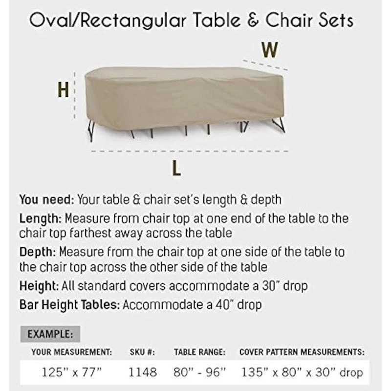 You may also like Simple Design Computer Writing Desk W/ Shelves Durable Compact Easy Assembly New 36.11 USD 38.01 USD Free shipping 5% off Eco-Friendly Computer Desk W/ CPU Shelf Two Drawer Storage Home Office Portable 39.01 USD 41.06 USD Free shipping 5% off Handmade Wood Decorative Box Floral Motifs Artisan Crafted Indian Accessory New 69.48 USD 73.14 USD Free shipping 5% off Machine Washable Non Slip Kitchen Rugs Set Absorbent Floor Mats Entrance Hallway 74.44 USD 78.36 USD Free shipping 5% off Cordless Angle Grinder 18V Battery Powered Metal Tool Adjustable Handle Green 55.09 USD 57.99 USD Free shipping 5% off 73 Compartment Tool Storage Box Organizer W/ Trays Durable Plastic Structure New 26.27 USD 27.65 USD Free shipping 5% off Luxury Bath Sheet Set 2 Soft Absorbent Cotton Terry Towels Hotel Quality 35x66In 129.15 USD 135.95 USD Free shipping 5% off Wood Jewelry Display Riser Set 5pcs Hexagon Stand Rings Necklaces Earrings New 42.15 USD 44.37 USD Free shipping 5% off 3-In-1 Coat Rack Shoe Bench Organizer 9 Hooks Storage Industrial Easy Assembly 69.44 USD 73.09 USD Free shipping 5% off Pentero 29 Inch Tall Fireclay Pedestal Bathroom Sink Stand Modern Fixture New 75.05 USD 79.0 USD Free shipping 5% off Touchscreen 2-Slice Toaster Quick View Function 30 Sec Control Sleek Design New 51.16 USD 53.85 USD Free shipping 5% off Carbon Steel Non-Stick Stir Fry Pan/Wok Easy Clean Soft Handle Healthy Cooking 27.81 USD 29.27 USD Free shipping 5% off About this item Weatherproof patio table and chair set cover with Velcro drawstring Fits 80 to 96 inch long oval or rectangular tables with 4 to 6 standard chairs Designed with hole for umbrella; umbrella cover sold separately; 7 millimeter vinyl shell UV treated to withstand sun exposure; won't crack in cold or come off in wind Material: Vinyl Color: Tan Brand: Protective Covers Item Weight: 9. 95 Pounds Water Resistance Level: Waterproof You may also like Simple Design Computer Writing Desk W/ Shelves Durable Compact Easy Assembly New 36.11 USD 38.01 USD Free shipping 5% off Eco-Friendly Computer Desk W/ CPU Shelf Two Drawer Storage Home Office Portable 39.01 USD 41.06 USD Free shipping 5% off Folding Bar Stools Set of 2 Heavy-Duty Indoor Compact Chairs W/ Padded Seats New 47.45 USD 49.95 USD Free shipping 5% off Retro Wooden Toy Chest Storage Bench Safety Hinges Easy Access Organizer Greige 69.48 USD 73.14 USD Free shipping 5% off 90°/180°rotatable Extension Pole Cordless Pole Saw 3.87-6.72 Foot Telescoping US 75.99 USD 79.99 USD Free shipping 5% off Cast Aluminum 10-In Fry Pan Nonstick Dishwasher Oven Safe Kitchen Essential New 27.94 USD 29.41 USD Free shipping 5% off 3 Pcs Black Jewelry Bust Display Stand Necklace Holder Mannequin Organizer New 39.88 USD 41.98 USD Free shipping 5% off Three-Light Indoor Island Pulley Pendant Vintage Industrial Metal Fixture New 164.48 USD 173.14 USD Free shipping 5% off Digital 2-Slice Toaster Touch Display Defrost Bagel High-Lift Easy Eject Kitchen 36.45 USD 38.37 USD Free shipping 5% off Airtight Kitchen Food Storage Containers 8 Pack Easy Lock Lids Organization Set 32.29 USD 33.99 USD Free shipping 5% off Solar LED Path Lights 20 Lumen Outdoor Landscape Lighting Eco-Friendly 2-Pack US 24.85 USD 26.16 USD Free shipping 5% off Ice Maker Assembly Kit IM116000 Refrigerators Appliance Repair Genuine Parts New 87.23 USD 91.82 USD Free shipping 5% off