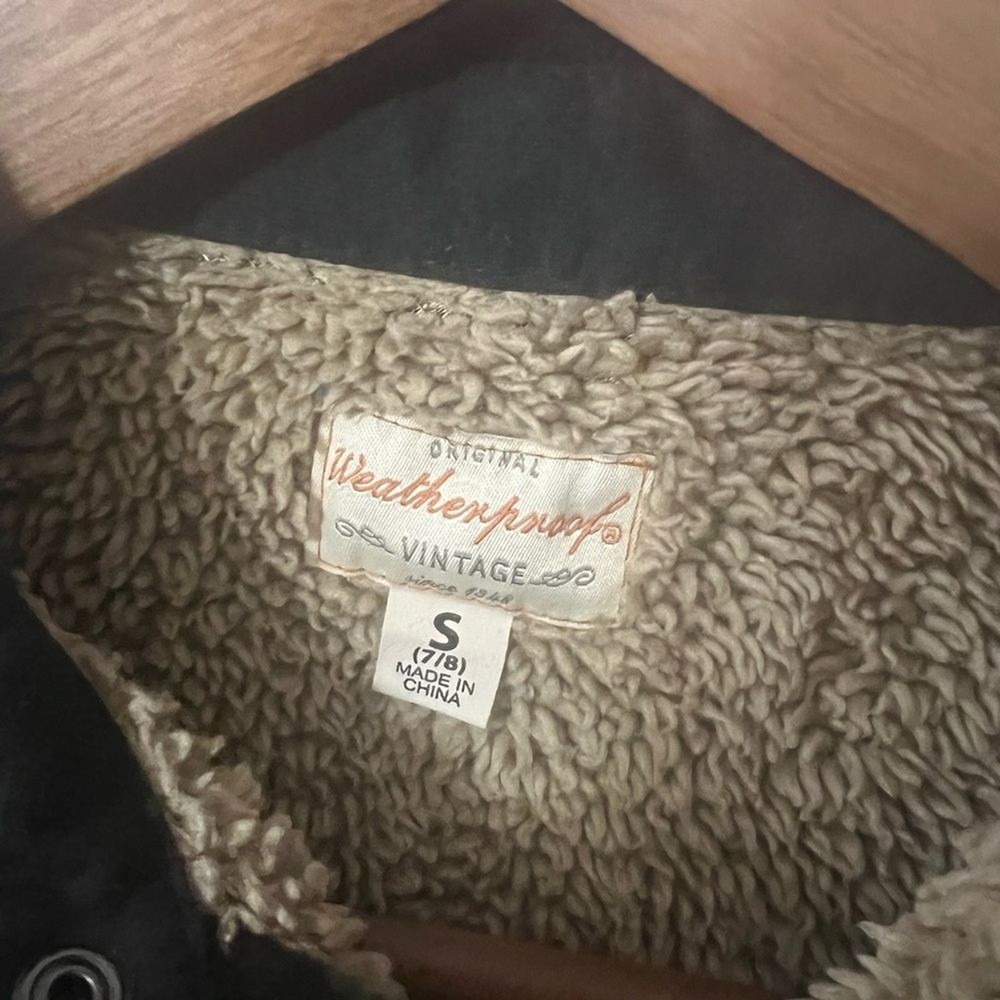 Weatherproof Vintage Boys Sherpa-Lined Flannel Jacket – Size Small (7/8) Warm, cozy, and perfect for chilly weather! This Weatherproof Vintage jacket features a soft sherpa lining, classic green plaid flannel exterior, and durable construction made for everyday wear. Great for school, fall, and winter adventures. Excellent pre-owned condition. Measurements (approx.): Length: 21” Armpit to Armpit: 16.5” Sleeve:20” #KidsOuterwear #WinterCoat #FallFashion #Kidscore #CozyStyle #PlaidJacket #BoysClothes #WarmLayers