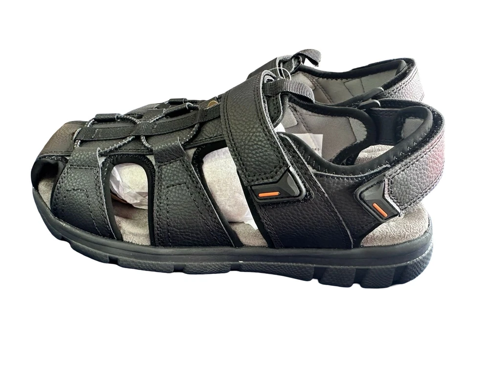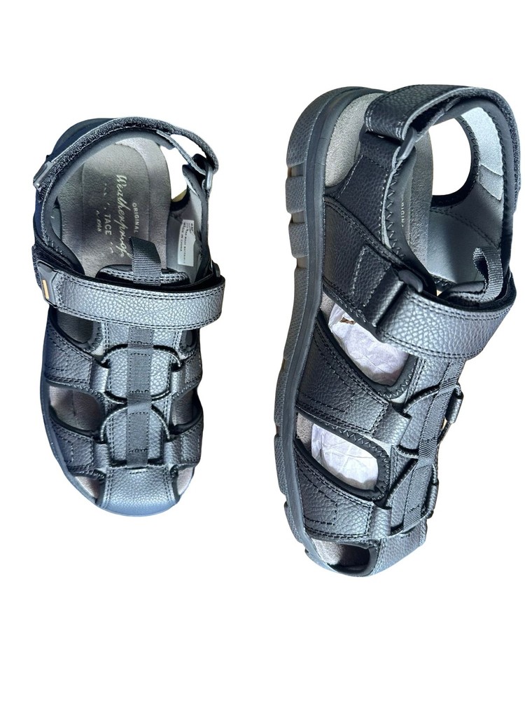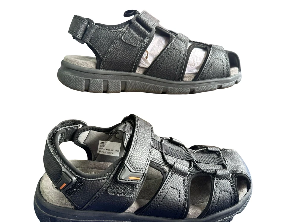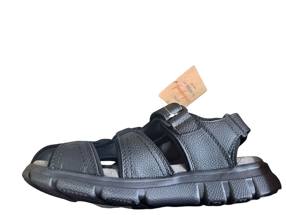 The Weatherproof Vintage Men's Cory Fisherman Sandals in medium black size 8M are a stylish and functional footwear option for casual occasions. With a solid black color, hook & loop closure, and slip-on style, these sandals feature a durable rubber outsole and canvas lining for comfort. Perfect for summer, fall, or spring, these sandals are designed to provide a modern touch with a fisherman character, making them a versatile addition to any man's shoe collection.