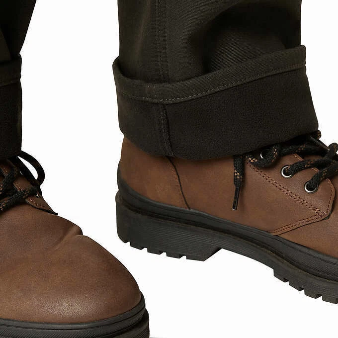 Weatherproof Vintage® Color: Brown , Gray Regular fit Fleece lined back pockets Made in Cambodia Content: Shell fabric: 98% Cotton | 2% Spandex Lining: 100% Polyester Approximate 410 GSM (12.1oz) fabric weight Heavyweight Sizing: Waist (in): 30 - 42 Inseam (in): 29, 30, 32, 34 Model is 6’2” wearing size 32x32 Color & size subject to availability Care Instructions: Machine wash cold with like colors Gentle cycle Only non-chlorine bleach when needed Line dry Cool iron if necessary Note: The digital images we display have the most accurate color possible. However, due to differences in computer monitors, there may be variations in color between the actual product and your screen. SHIP ASAP