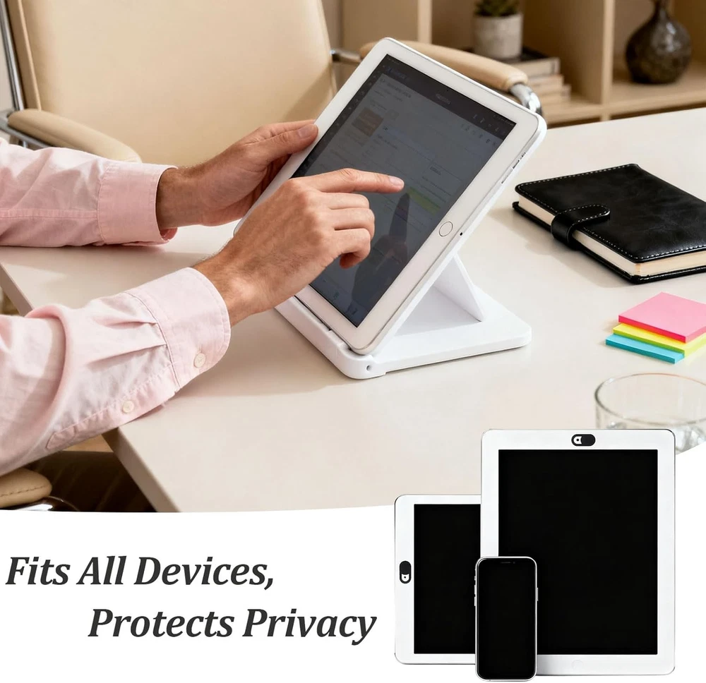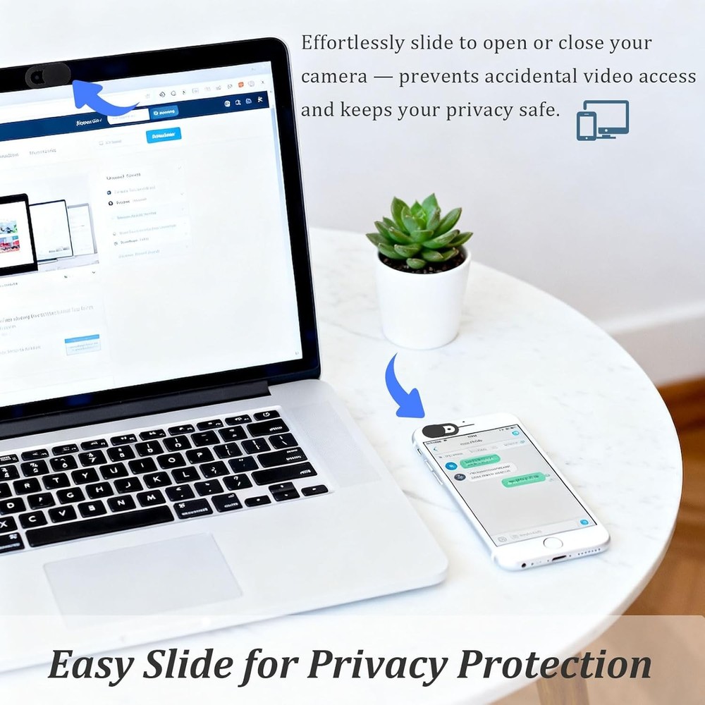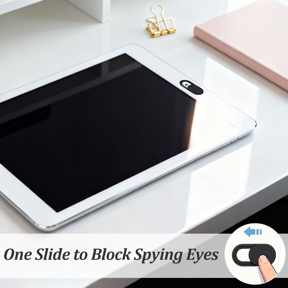 Free eBay listing template designed by dewiso.com Webcam Cover Slide (25-Pack) – Ultra-Thin Privacy Camera Blocker for MacBook, iPhone, iPad, Laptop, PC & Smartphones – Black FREE AND FAST SHIPPING! About this item Protect Your Privacy: Keep your digital life secure with this webcam cover slide, designed to block your device’s camera when not in use and prevent unwanted spying or hacking attempts. Ultra-Thin & Sleek Design: This slim cover fits seamlessly on laptops and mobile devices without interfering with screen closure—maintaining both protection and aesthetics. Universal Compatibility: Works with most devices, including laptops, tablets, smartphones, and desktops—for MacBook, iPhone, iPad, Dell, HP, Lenovo, Acer, ASUS, and Samsung. (Not suitable for MacBooks released after 2023 or full-screen devices with notches.) Strong Adhesive & Durable Hold: Equipped with an upgraded 3.0 adhesive, it provides a secure fit without damaging your device. Reliable, long-lasting protection for everyday use. Easy to Install & Use: Simple 4-step setup—clean, apply, align, and press for 10 seconds. Slide open when using your camera and close for instant privacy. Product We offer a 30-Day Return Policy on items which you are not completely satisfied with. You have the option for a full-refund or an exchange of the item. No returns are available on items shipped outside of the US . Shipping We offer Free Shipping to the US and ship within 2 business days of payment, usually sooner. We use UPS express shipping. That's why your products are usually delivered within 3 days . Contact We try our very best to make sure every customer is completely satisfied. If there's a problem , message us! We're happy to help. 24/7 live chat available.