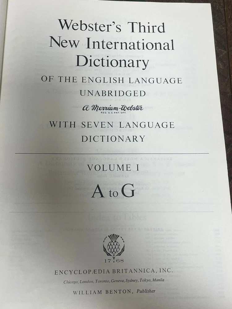 Seller Notes: “Used Vintage Condition” Personalised: No Language: English Type: Specialised Dictionary Series: Webster's New World Author: Merriam Webster Format: Hardcover Country of Origin: United States Publication Name: Websters Third New International Dictionary Source Language: English Subject: Languages