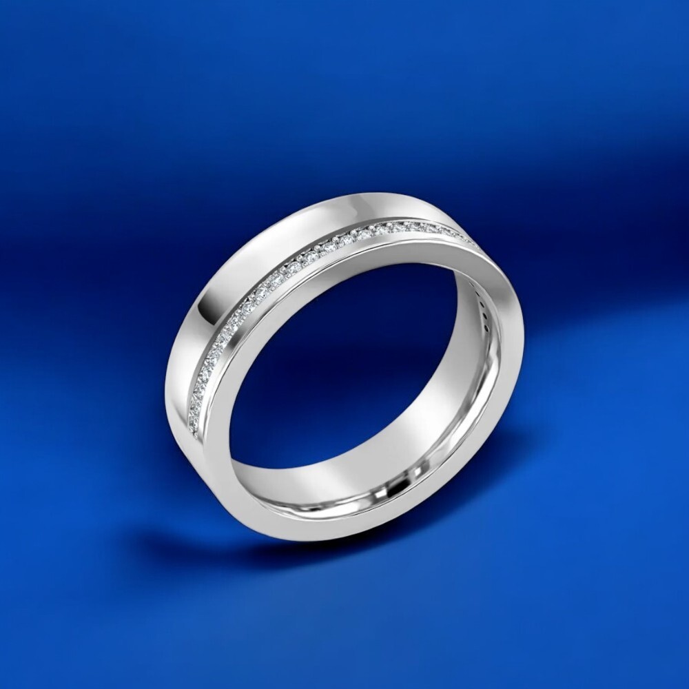 $ 74.014.2Ct Round Moissanite Men's Engagement Band in 14K White Gold Plated Channel Setting