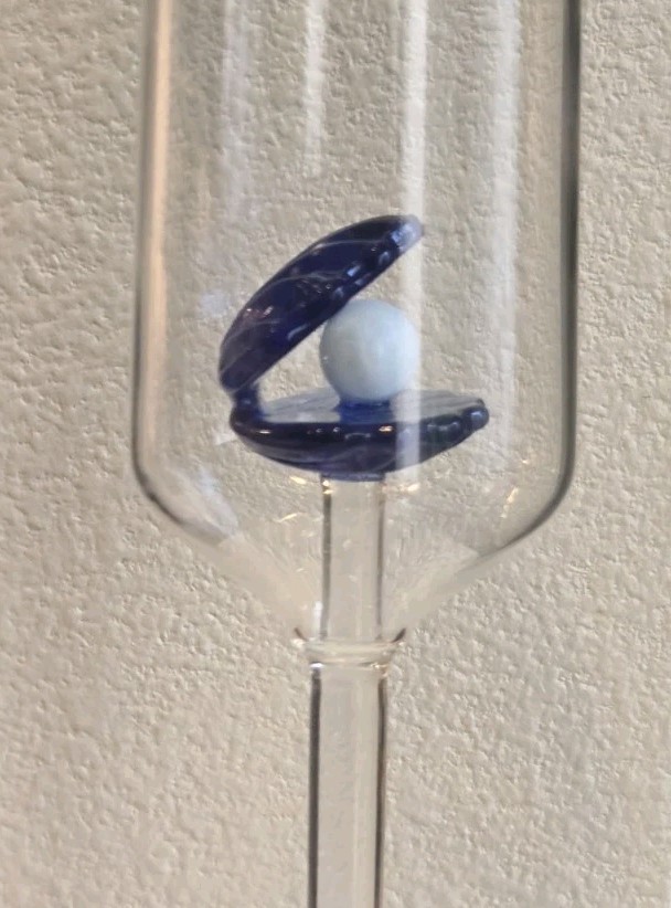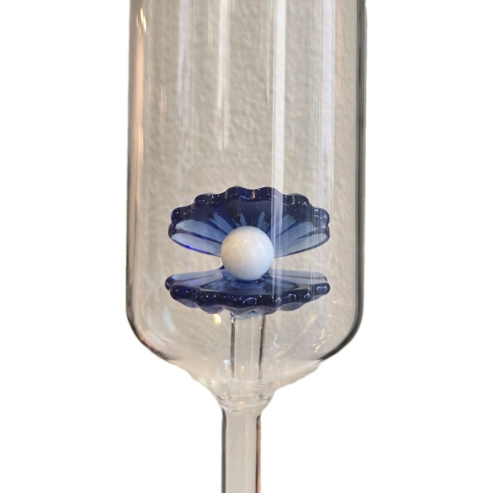 New Wedding Beach Blue Oyster / Clam W/ Pearl Champagne Flute Beverage Glass Condition: New 10 1/2" Tall This product is a stunning blue oyster/clam with pearl champagne flute/beverage glass, featuring a coquette bow pattern and an elegant chic style. Standing at 10 inches tall, this glassware item is perfect for all occasions, especially Valentine's Day. Hand wash only to maintain its beauty, this champagne glass is sure to add a touch of glamour to any beach-themed celebration. (Bin A58) SKU008032327PH