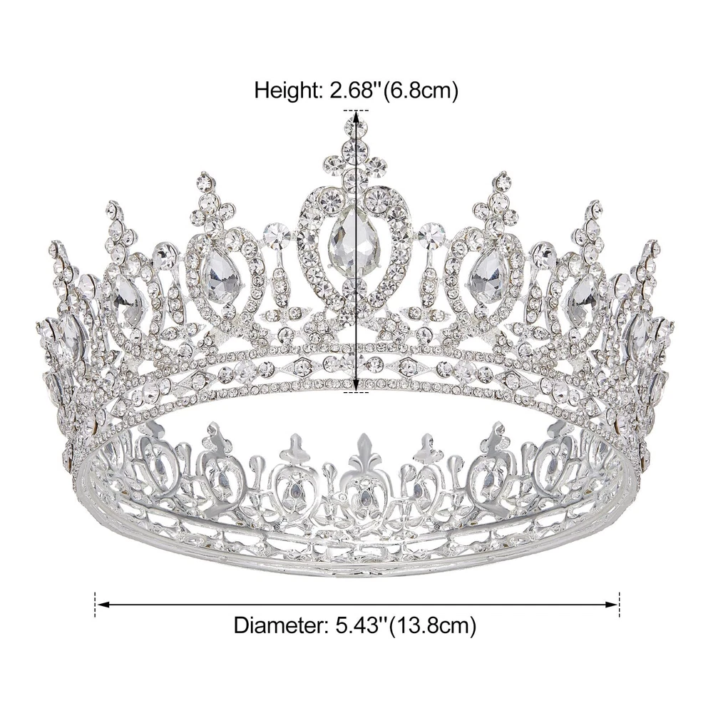 👸Material: Wedding crown is made of hard alloy and rhinestones. It's anti-rust, nickel free and anti-alleryic for safe wearing. 👸Size: Bridal crown measures approximately 2.68" in height, 5.43" in diameter, 0.53 lb in weight, Suitable for adults and teenagers. 👸Securing: Crowns for women is full crown design. Pin loops at the bottom of crown for extra . (Bobby pins included) 👸Occasion: The silver crown is ideal for weddings, anniversaries, engagements, proms, Halloween, parties, costumes, pageants, photography props, etc. It also can be used as a CAKE TOPPER. 👸: Feel free to us by if you have questions or need help. .