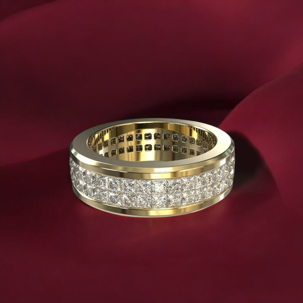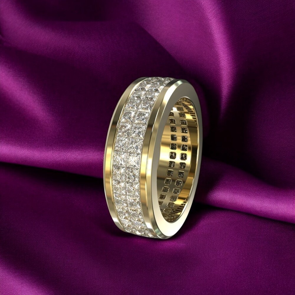 $ 78.114K Yellow Gold Plated 4mm Round Cut VVS Moissanite Engagement Mens Wedding Band