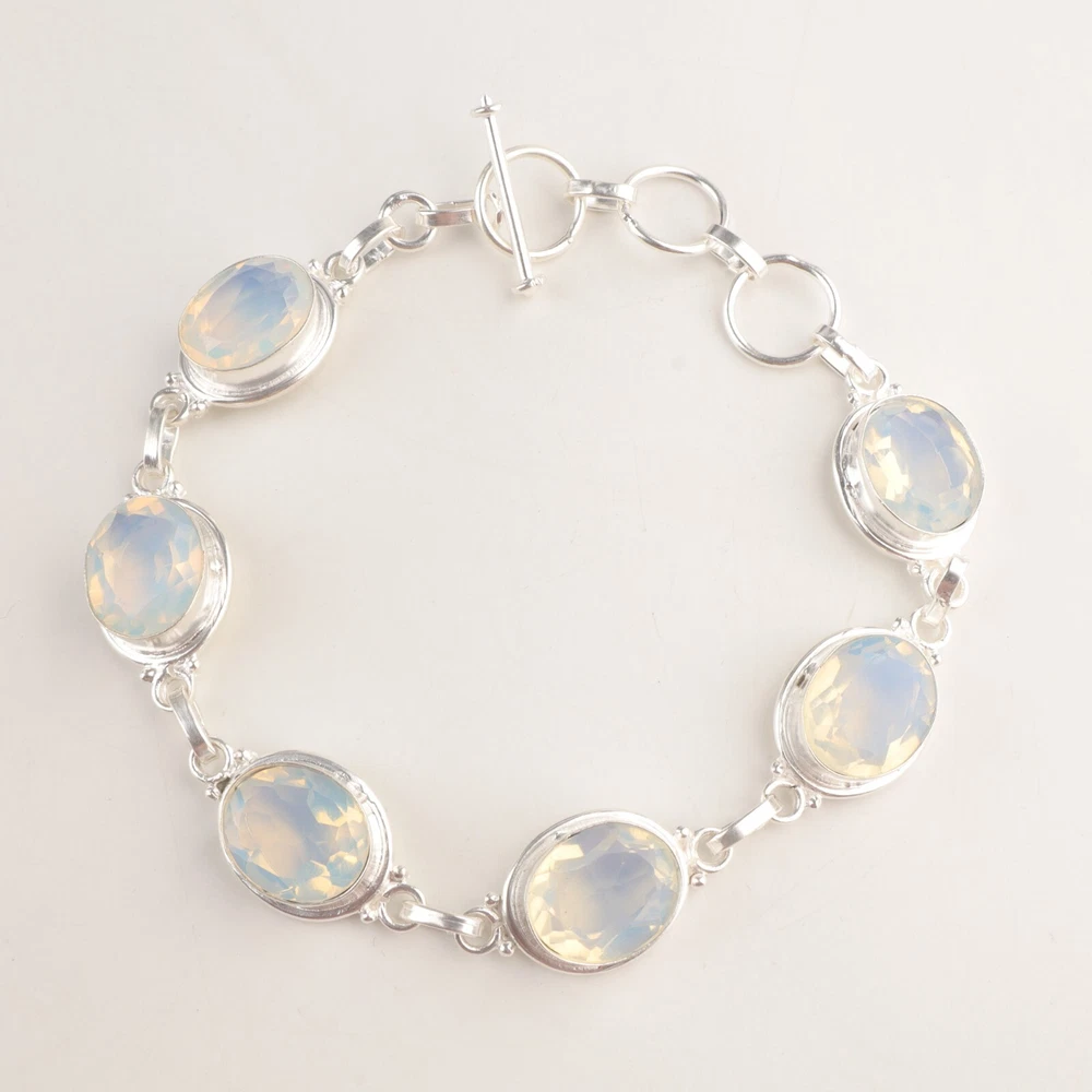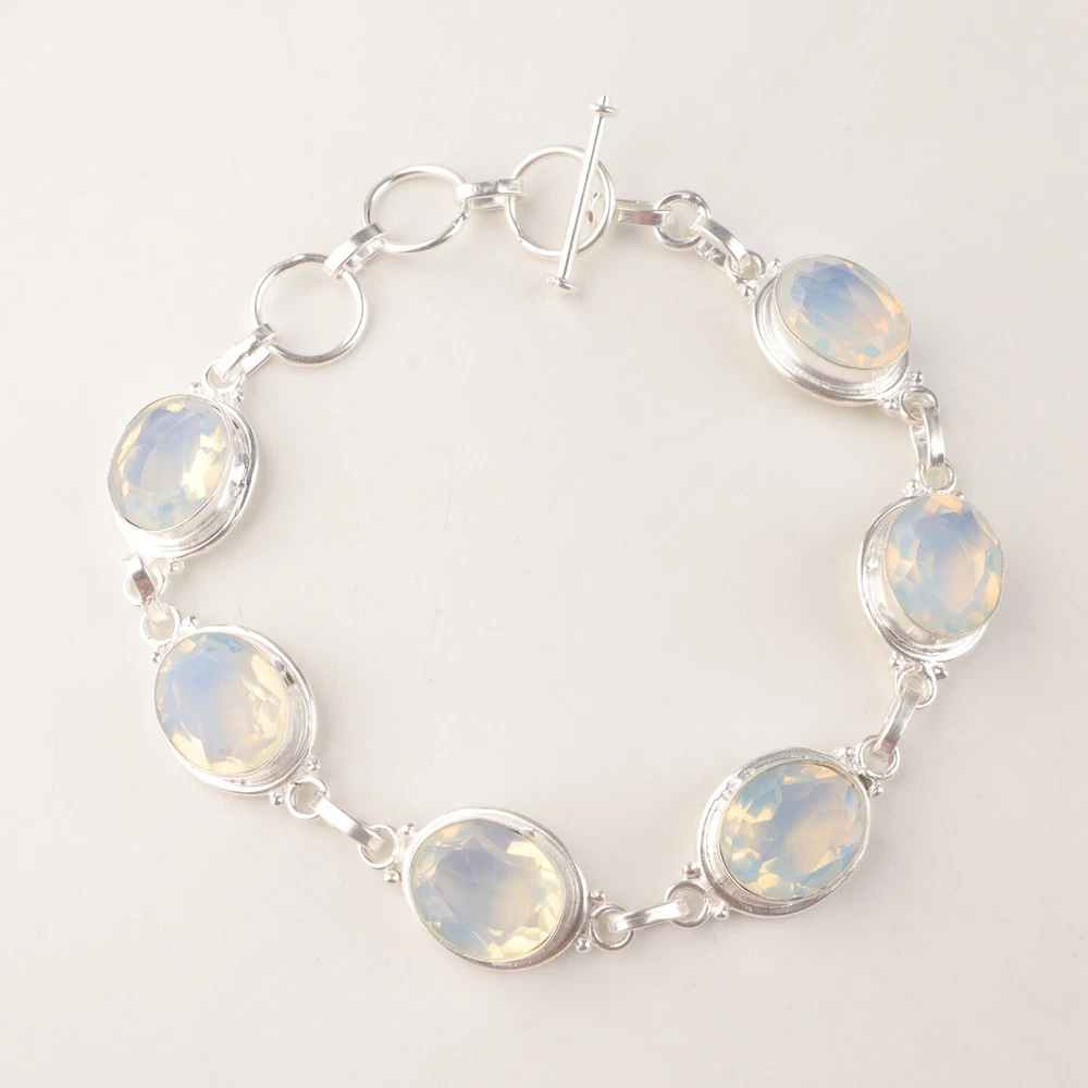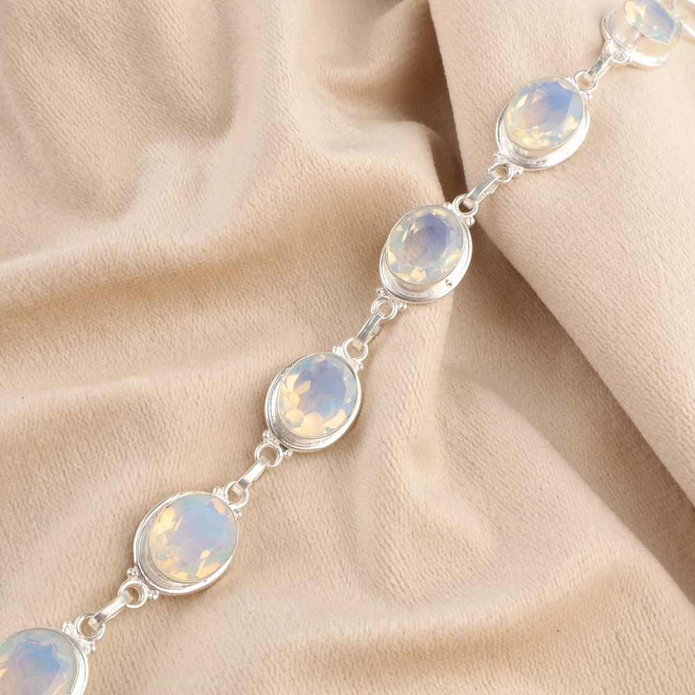 Welcome to Jaipur Silver Gallery Wedding Gift For Her 925 Silver Natural Milky Opal Gemstone Chain Bracelet Handmade Bracelet, Sterling Silver Bracelet, Milky Opal Bracelet, Handcrafted Bracelet SKU : - JSRB-3-14 Gemstone : - Milky Opal Stone Shape : - Oval Metal : - Sterling Silver Metal Purity : - 925 Bracelet Length : 8.5 Inches Adjustable : _______________________________________________________________________________________ Amazing Properties of Silver ****************************** Tough and Long-lasting: Silver is incredibly strong, built to withstand daily wear and tear as well as tough environmental conditions. Easy to Shape and Design: Silver is like clay for skilled craftsmen, allowing them to create beautiful and intricate designs effortlessly. Great at Conducting Energy: When it comes to heat and electricity, silver is the go-to. It can quickly and efficiently transfer energy, making it ideal for various applications. Keeps Things Clean and Safe: Silver has a natural ability to keep harmful bacteria at bay, making it a reliable choice for promoting cleanliness and well-being. 3 Underrated Benefits Of Silver ****************************** Gorgeous Charm: Silver jewelry shines brightly, enhancing any outfit and fitting everyone's style with ease. Gentle on Skin: Silver is kind to your skin, reducing the chance of allergies and making it a favorite choice for accessories. Healing Vibes: Some believe silver jewelry has a soothing touch, possibly aiding in easing issues like arthritis, anxiety, and the blues. _______________________________________________________________________________________ For Mother's Day Gift For Father's Day Gift For Promise For Valentine' Day For Halloween Party For Christmas Day Gift For New Year Party For Mom For Her _______________________________________________________________________________________ If you need more help or want design tips, just give us a shout! We're lightning-fast in getting back to you. Every single thing we create is made by hand in our special workshop, and we put a whole lot of love and care into every piece. Thank you for stopping by! We're confident you'll have an amazing time shopping with us. We're here to make sure every moment you spend with us is filled with delight and satisfaction. Happy shopping!