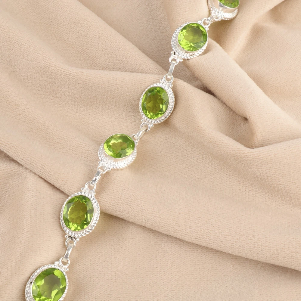 Welcome to Jaipur Silver Gallery Wedding Gift For Her 925 Sterling Silver Natural Peridot Gemstone Chain Bracelet Handmade Bracelet, Sterling Silver Bracelet, Peridot Bracelet, Handcrafted Bracelet SKU : - JSRB-2-7 Gemstone : - Peridot Stone Shape : - Oval Metal : - Sterling Silver Metal Purity : - 925 Bracelet Length : 8.5 Inches Adjustable : _______________________________________________________________________________________ Amazing Properties of Silver ****************************** Tough and Long-lasting: Silver is incredibly strong, built to withstand daily wear and tear as well as tough environmental conditions. Easy to Shape and Design: Silver is like clay for skilled craftsmen, allowing them to create beautiful and intricate designs effortlessly. Great at Conducting Energy: When it comes to heat and electricity, silver is the go-to. It can quickly and efficiently transfer energy, making it ideal for various applications. Keeps Things Clean and Safe: Silver has a natural ability to keep harmful bacteria at bay, making it a reliable choice for promoting cleanliness and well-being. 3 Underrated Benefits Of Silver ****************************** Gorgeous Charm: Silver jewelry shines brightly, enhancing any outfit and fitting everyone's style with ease. Gentle on Skin: Silver is kind to your skin, reducing the chance of allergies and making it a favorite choice for accessories. Healing Vibes: Some believe silver jewelry has a soothing touch, possibly aiding in easing issues like arthritis, anxiety, and the blues. _______________________________________________________________________________________ For Mother's Day Gift For Father's Day Gift For Promise For Valentine' Day For Halloween Party For Christmas Day Gift For New Year Party For Mom For Her _______________________________________________________________________________________ If you need more help or want design tips, just give us a shout! We're lightning-fast in getting back to you. Every single thing we create is made by hand in our special workshop, and we put a whole lot of love and care into every piece. Thank you for stopping by! We're confident you'll have an amazing time shopping with us. We're here to make sure every moment you spend with us is filled with delight and satisfaction. Happy shopping!