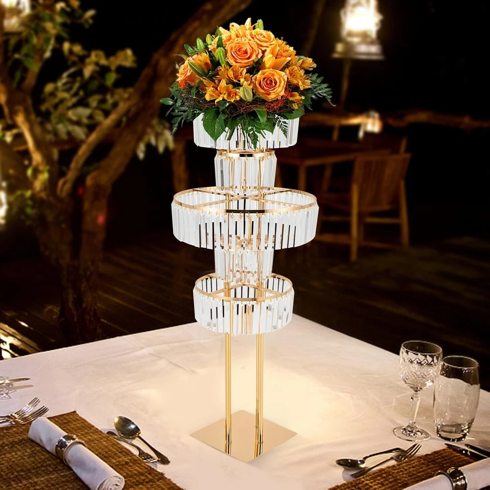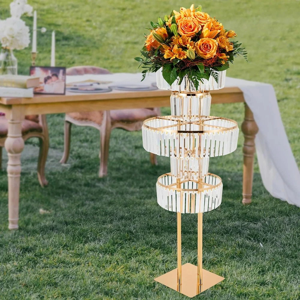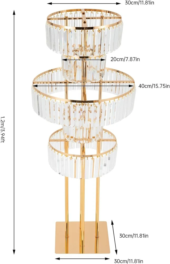 Wedding Gold Vases Centerpieces Luxurious Crystal Flower Stand,5 Tier Product Description Specifications Material: Iron, AcrylicCrystal Process: Electroplated Color: Gold+ Clear Style: Modern Shape: Round Mount Type: Floor Mount Assembly Required: Yes Number of Tiers: 5 Load-bearing Capacity:15kg/33.06lbs Product Height: 1.2m/3.94ft Large Circle Diameter: 40cm/15.75in Middle Circle Diameter: 30cm/11.81in Small Circle Diameter: 20cm/7.87in Base Size: 30*30cm/11.81*11.81inch Gross Weight: 12kg/26.45lbs Net Weight: 11kg/24.25lbs Package Size: 53*53*12cm/20.86*20.86*4.72in Package Included 1* Five-tier Crystal Flower Stand Notes 1. Please note that the product does not includeother decorations. 2. Please note that there are four support rods atthe bottom of the product, but some of the rods may be blocked due to theshooting angle. 3. It is recommended not to have too many waterstains, which will shorten the service life. 4. Please allow the slight color difference causedby the shooting light and 1-3cm error due to manual measurement, and make sureyou do not mind before you order. Payment Delivery details Terms of sales About us Contact us Payment We accept ebay payment 。 Fees such as import duties, taxes are not included in the item price or shipping costs. These charges are the buyer's responsibility. Delivery details Shipping: 2-9 working days to: USA Terms of sales We maintain high standards of excellence and strive for hundred percent customer satisfaction. Feedback is very important to us. We hope that you contact us immediately before you give neutral or negative feedback, so that we can address your concerns. It is impossible to address issues if we do not know about them! About us Your satis faction is our ultimate goal. We work hard to earn your trust and future business. Our certified technicians have tested each item before shipping. The unit comes with 1 year limited warranty on all manufacturing defects. a) If you receive a defective item, you may return it or ask for a discount. Please contact us within 14 days after you receive the package. b) What you returned must be intact and in its original packaging as re? u. Customer is responsible for shipping costs of the returned item. c) We will cover the cost of shipping back t with the shipping rate indicated in the registration page. We will send you a new unit or refund the full payment you paid. Thank you. Contact us Business Hour Business Hour: Monday To Friday: 8:30 AM to 5:00 PM (Beijing China time) Due to time zones, our reply to your questions may not be immediately. But within above working time, we will reply your email within 24 hours. If it's non-workdays, please kindly be patient and wait till Monday. Please contact us with ebay message. Please feel free to contact us if you have any questions. Monday To Friday: 8:30 AM to 5:00 PM (Beijing China time) Due to time zones, our reply to your questions may not be immediately. But within above working time, we will reply your email within 24 hours. If it's non-workdays, please kindly be patient and wait till Monday. Please contact us with ebay message. Please feel free to contact us if you have any questions. Feature! Stable performance, durable binding kitchen Brand unbranded Embellishment Feature Crystal Installation Type Freestanding Recommended Uses For Product Inddor Outdoor Material Type Acrylic Crystal, Iron Mounting Type Table Special Features Durable Finish Types gold, iron Style Name Modern Item Shape Round Type Roman Column Color Gold Theme Wedding Party Decor
