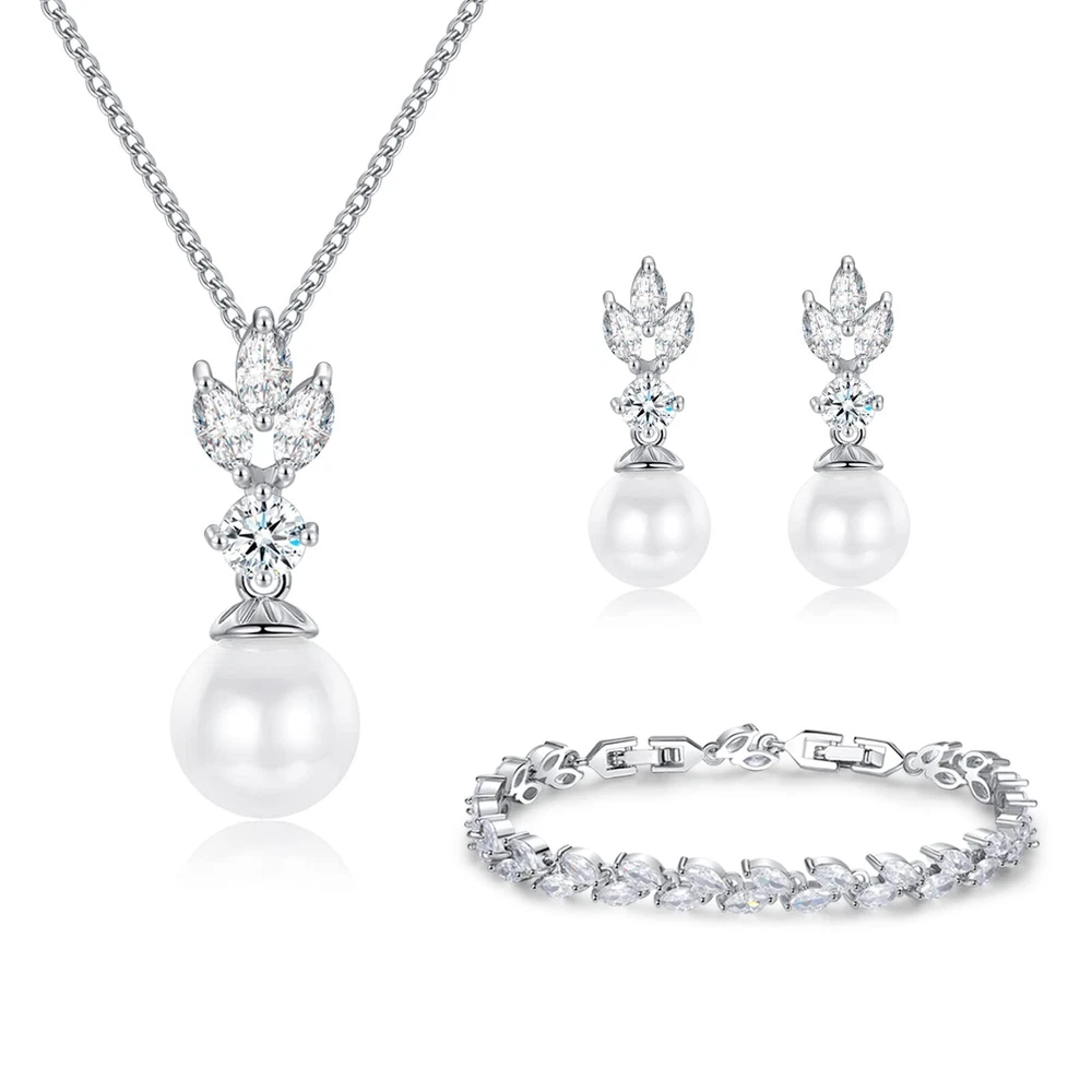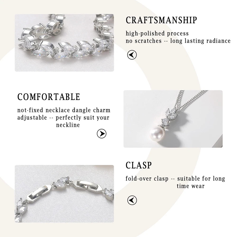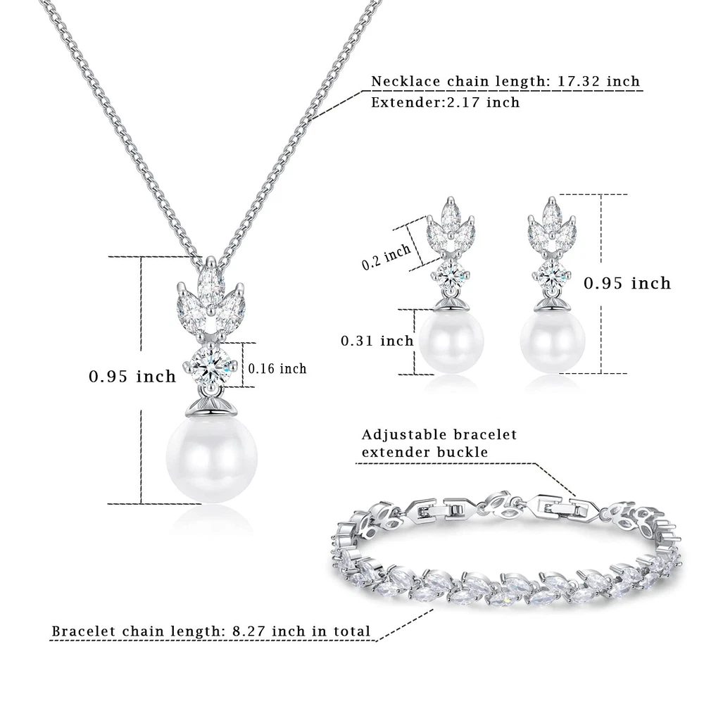 Wedding Jewelry for Bride Bridesmaid, Pearl Dangle Earrings and Pendant Necklace Set Bridal Jewelry for Promise Wedding Party Product Details Color: 1#Silver-1 Set-Necklace/Bracelet/Earrings Brand: IDASANY MPN: Does not apply UPC: Does not apply EAN: Does not apply Department : womens Date First Available : July 20, 2021 Manufacturer : IDASANY Brand, Seller, or Collection Name: IDASANY Metal stamp: 14k Metal: metal Material: 14K White Gold Gem Type: Cubic Zirconia Clasp: Buckle Clasp Number of stones: 25