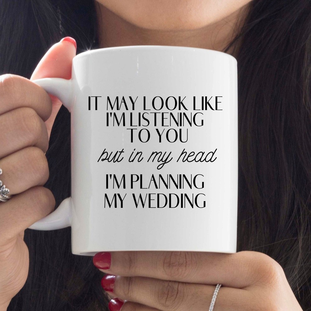 Wedding Planning Mug / Cute Coffee Cup For Wedding Planning / Planning My Product Details.. This high quality 11oz. ceramic white mug has a premium hard coat that provides crisp and vibrant color reproduction sure to last for years. Perfect for all hot & cold beverages. The highest quality printing possible is used. It will never fade no matter how many times you wash it. Material: 100% Ceramic. Print both sides. Dishwasher and Microwave Safe. High Gloss + Premium White Finish. Printed in the U.S.A. Personalized & Custom. We support personalized and custom mug to add custom, when placing an order, you can add notes to the "order note" in shipping address section. Also you can contact us directly via message. Shipping Info. Ready to ship in 1 to 2 business days, All products are made-to-order and proudly printed in the United States. Shipped by USPS and DHL, You will receive your order in 5-7 days. Replace & Refund. All products are defective during shipping broken, chipped will be replaced free of charge. You are not satisfied with the product, we will refund 100% money to you. If any other issues arise, please do not hesitate to message, we would be more than happy to assist you.