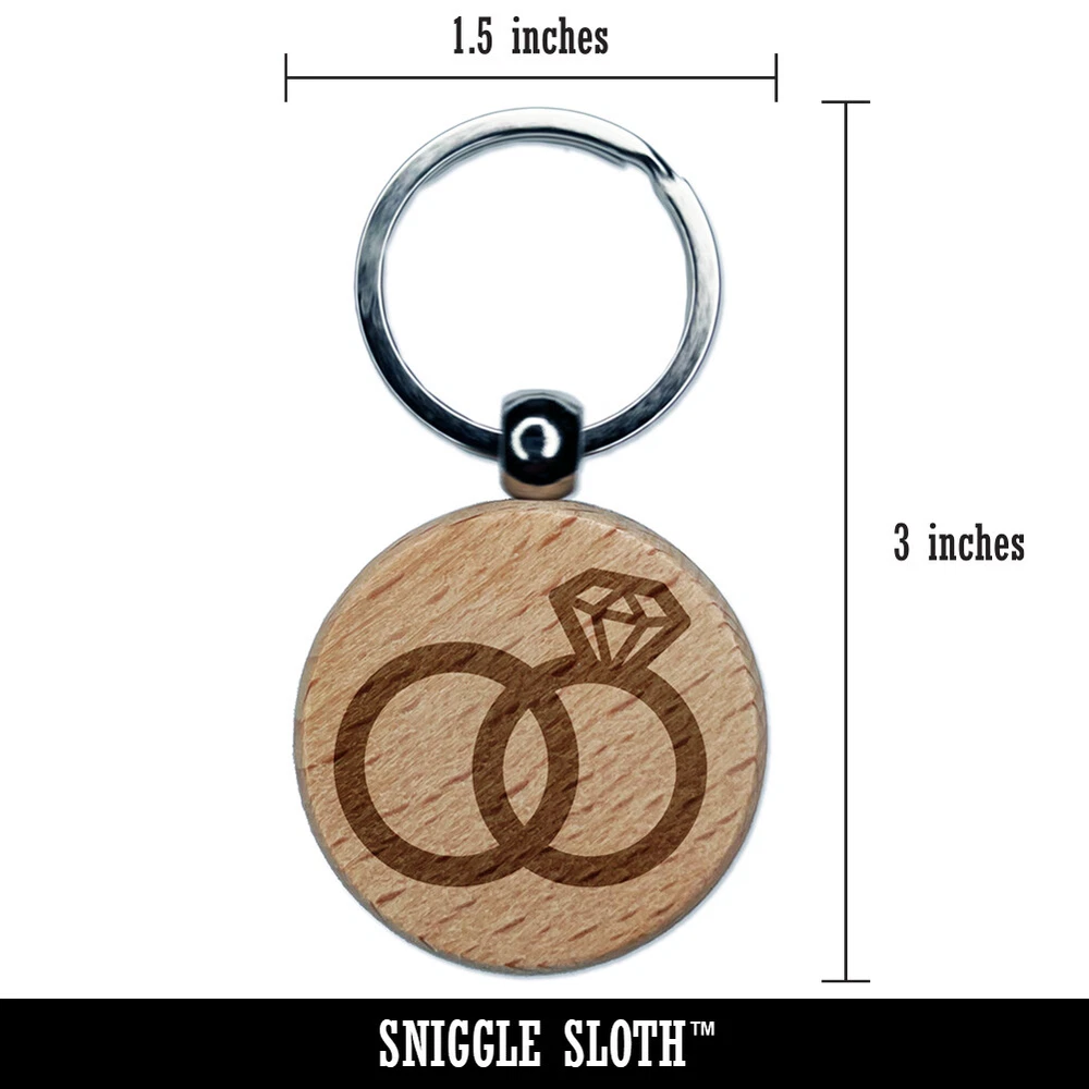 Wedding Rings with Diamond Overlapping Engraved Wood Round Keychain Tag Charm