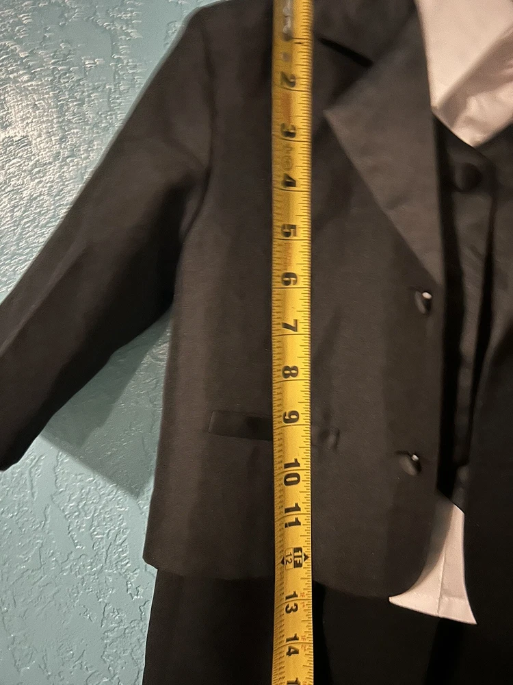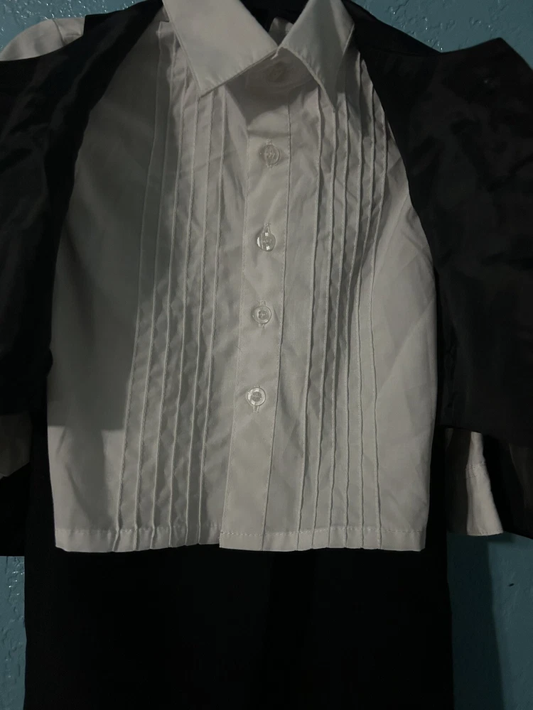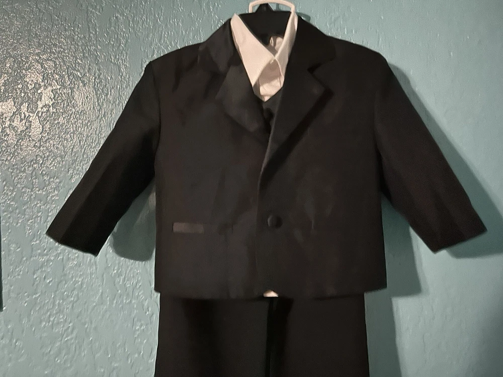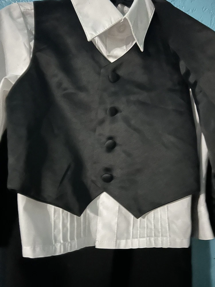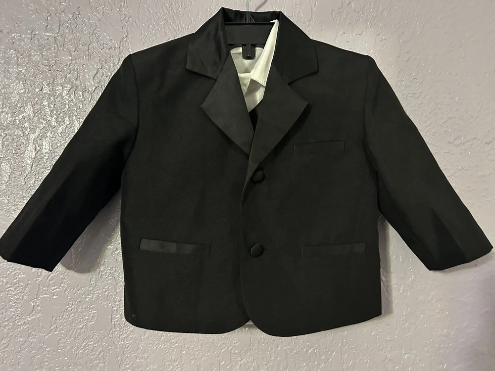 Wedding Black Suit Jacket Vest pants 4 Pcs Set Children Formal Tuxedo Host Dance Party Size :1 Unbranded Pre owned but in good condition Please see pictures for measurements and details Set has 4 pieces - 1 suit jacket black long sleeve -1 pant black -1 white shirt long sleeve -1 black vest