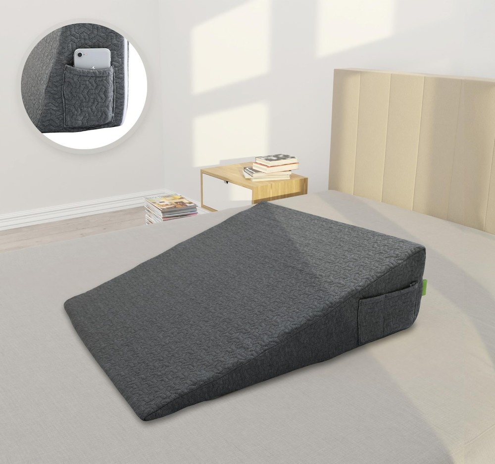 Are you looking for a way to keep your 24x24x7 inches bed wedge pillow clean and protected? Look no further than our wedge pillow case cover! Our wedge pillow cover is spun and knitted from long, strong, soft fibers derived from the pulp of bambooplants. This makes it breathable, stretchable, and soft against your skin. It's also lightweight and durable, perfect for maintaining your wedge pillow in top condition. We recommend changing the pillowcase at least once a week. A clean sleeping environment enhances your rest, leading to better health. Regularly changing your pillowcase supports healthy, restful sleep. Additionally, we offer a risk-free purchase policy, ensuring you're getting the best possible wedge pillowcase. SOFT and BREATHABLE. The wedge pillow cover is made from 40% viscose derived from bamboo, which makes it more breathable and stretchable than cotton. This material feels naturally soft and lightweight against your skin. It also tends to be more durable than a standard pillow case cover. PERFECT FIT. This wedge pillow case measures 24x24x7 inches. It fits the standard 7-inch wedge pillow perfectly. Add this pillowcase, made from soft 40% viscose derived from bamboo, to get cozy and also protect your wedge pillow from stains, keeping it clean. EASY TO CLEAN. Simply toss this removable pillow cover with a zipper into the washing machine and set it on a delicate cycle. Please avoid using bleach. It is recommended to use a mild detergent and wash in cold water, with a maximum temperature of 30℃(86℉). SIDE POCKET. Convenience has never been so accessible! The bed wedge pillow cover features pockets on either side, providing an instant and easy-to-reach storage space for small items commonly used in bed. ZERO-RISK PURCHASE. We are so confident in the quality and durability of our pillow cover, made from 40% viscose derived from bamboo, that if the product does not meet your expectations, if you simply change your mind, or if you are not satisfied with it, you can return it with no questions asked.