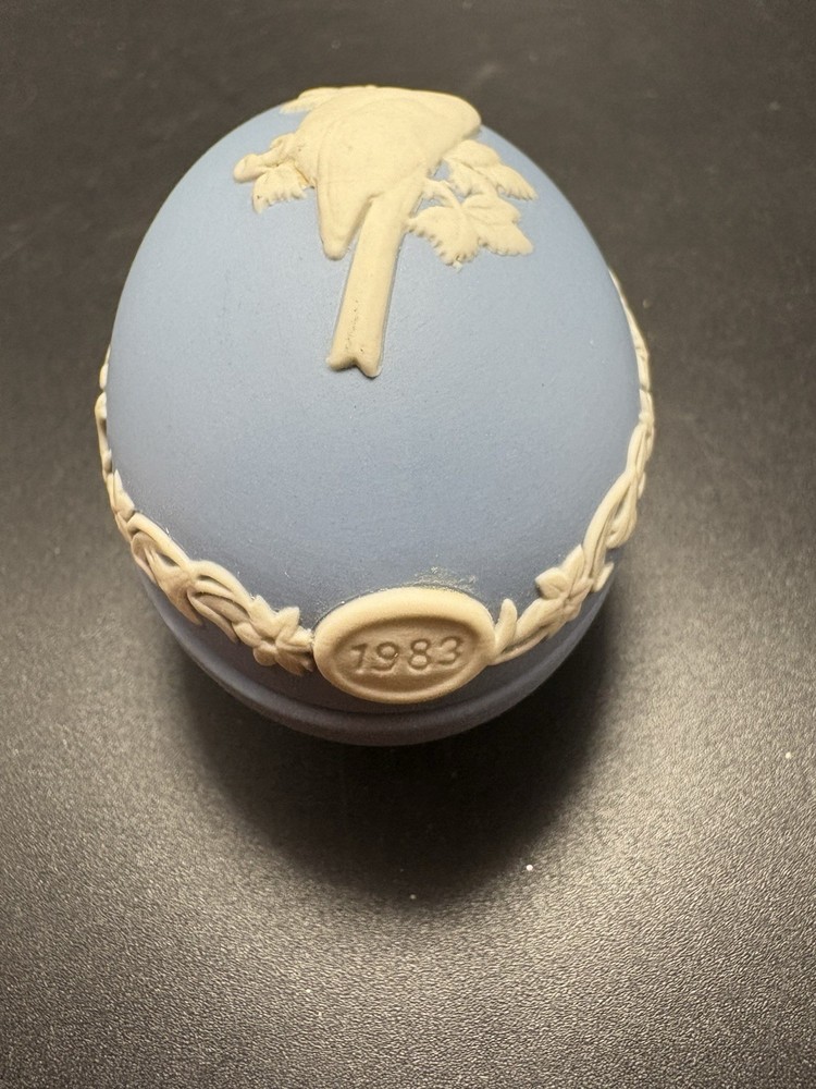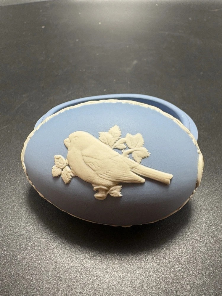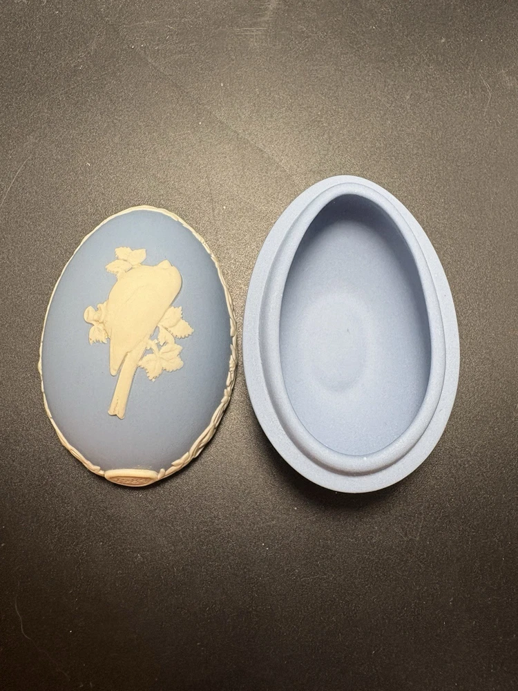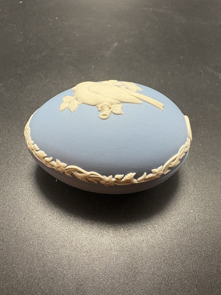 This vintage Wedgewood Blue Jasperware Egg Shaped Trinket Dish is a charming and elegant piece made in England. Crafted from ceramic and porcelain, this original trinket dish features the classic Wedgewood brand and the signature Jasperware style. The beautiful blue color adds a touch of sophistication to any space, making it a perfect addition to any collection or as a stylish decor item. All items are sold as is. We do our best to photograph any imperfections and list marks, scratches, or any other damage in the description. If you have any questions regarding an items condition please feel free to send us a message.