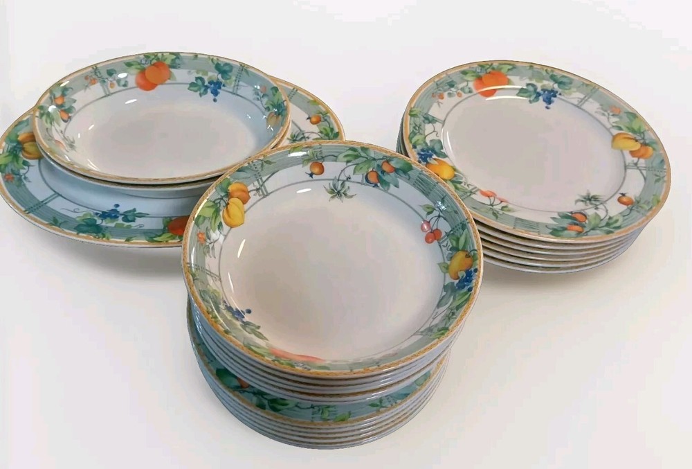 Vintage 1995 Wedgewood Eden Dinnerwear Set Of 24 from Portugal includes Salad Bowls, Salad Plates, Dinner Plates, Serving bowls, and Platter Includes: One 14 - inch platter Two 10.5 - inch serving bowls Six 8.5 - inch round bowls Six 8.25 - inch salad plates Six 10.5 - inch dinner plates Beautiful set all in good condition! Packaged with care for safe delivery and fast shipping