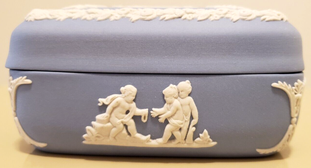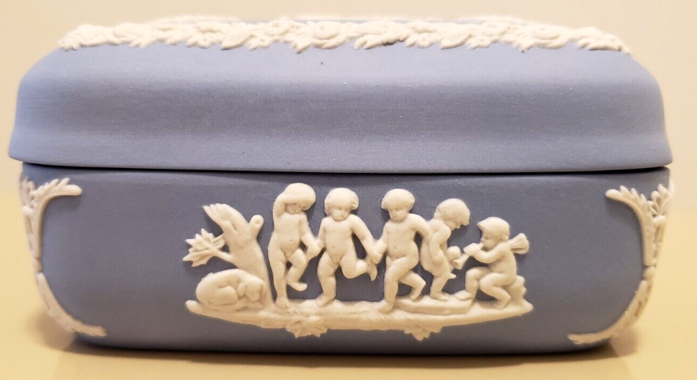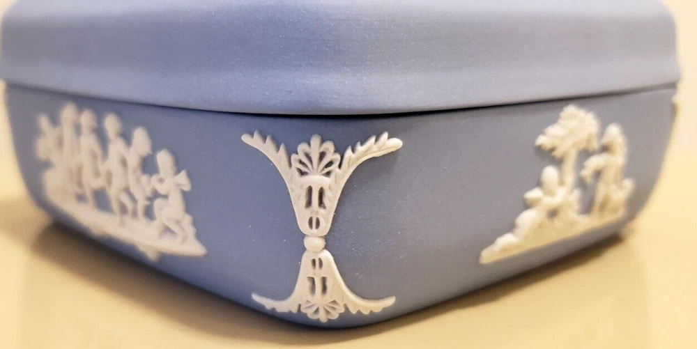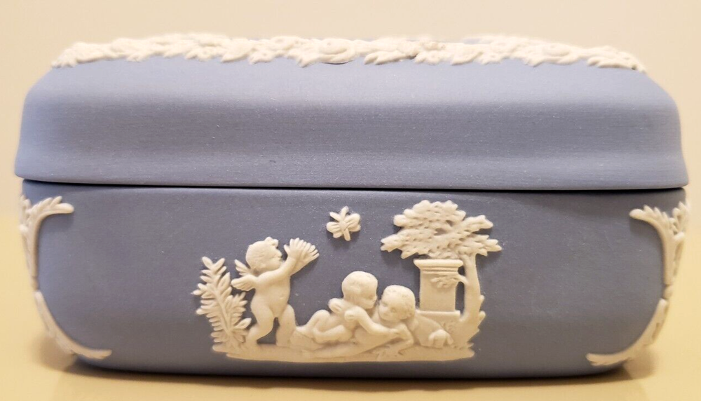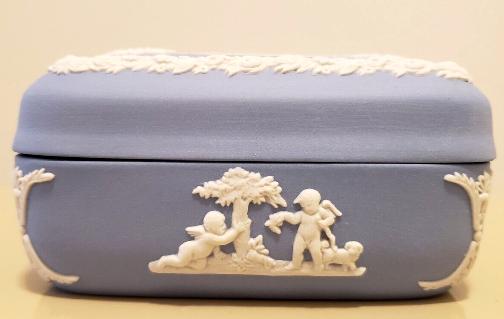Material: Ceramic Brand: Wedgwood Style: British Shape: Square Subject: Angels Color: Blue Size: Small Collection: Keepsake Boxes Type: Trinket Box Features: Boxed Country/Region of Manufacture: United Kingdom