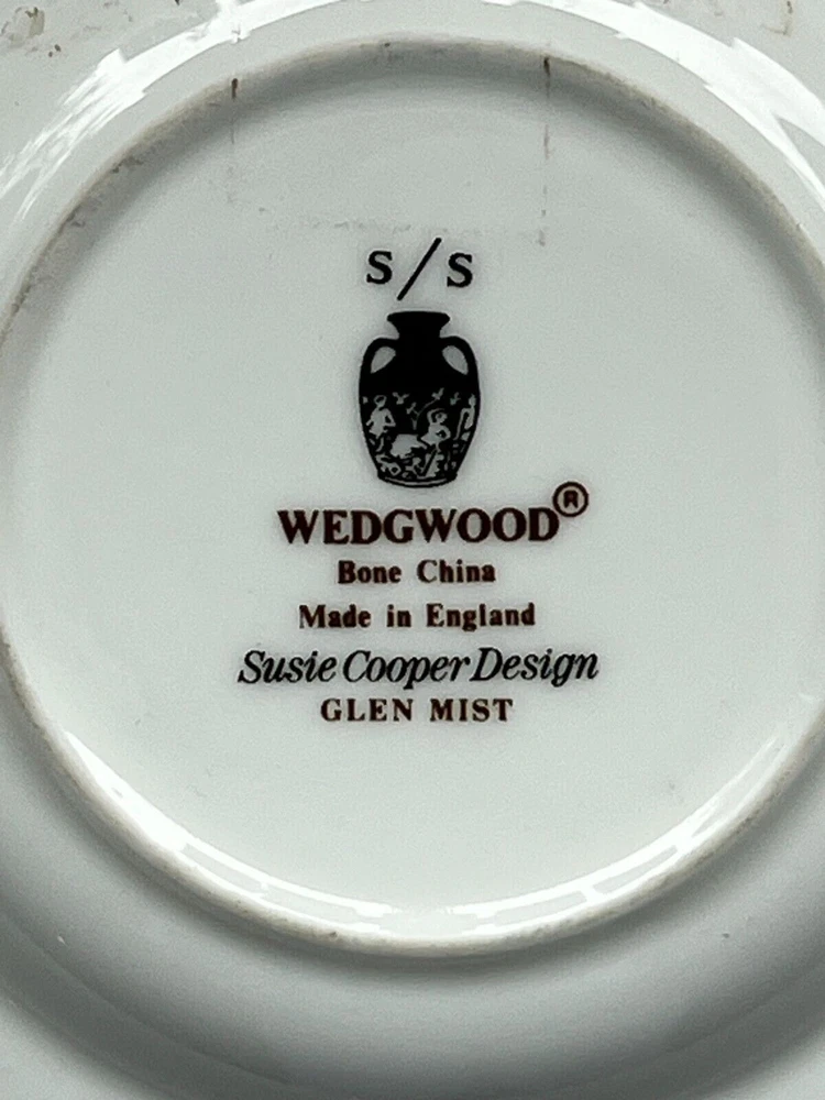 Wedgwood Bone China Susie Cooper Design Glen Mist Round Trinket Dish Plate Has a diameter of 4 1/2" In good vintage condition with no breaks, cracks or chips FAQs All items are examined and every attempt is made to describe them completely and accurately. However, most items are antique/vintage, and by virtue of their age will not be perfect. They are previously owned and may show very fine handling marks and shelf wear and will not be perfect. Upon receipt if you have any concerns please contact me! If for any reason you are inclined to rate your experience less than five stars contact me first - lets discuss. Customer support is important to me as is your satisfaction! Combined Shipping? Yes, we do, and you will save $$ when you buy more than 1 item from us. Will my item be insured in transit? Yes, automatically by Ship Saver, the Post Office or Self Insurance. How will it be packed? Professionally! In bubble wrap with plenty of clean, recycled products and packaging tape for security. How can I pay? PayPal or other- Contact us if you need other payment method. Sorry, but after 7 days' of non-payment, eBay gets involved. Any issue, please talk to us! THANK YOU for shopping with P-B-Antiques Listing and template services provided by inkFrog