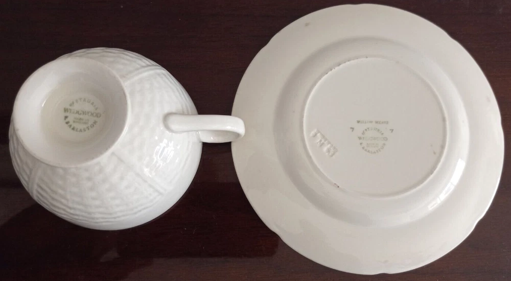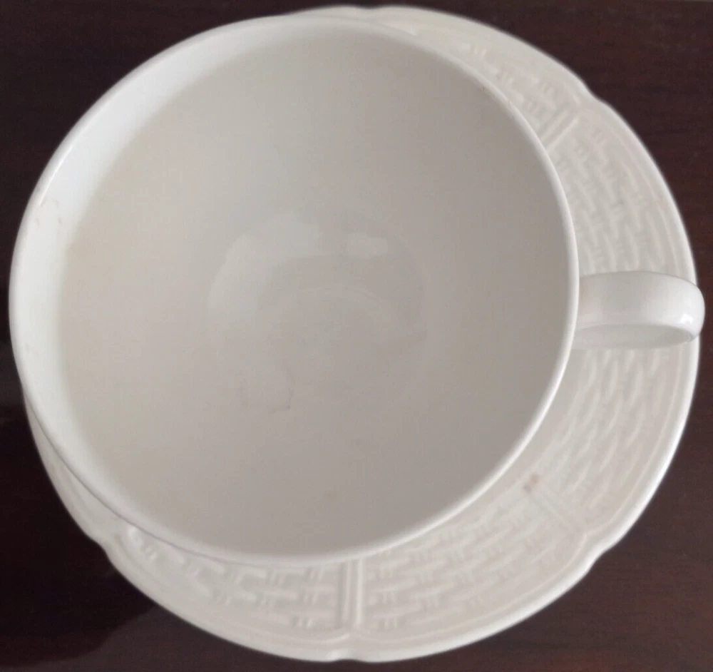 Elevate your tea experience with the Wedgwood Bone Willow Weave Tea Cup and Saucer set, a classic representation of English craftsmanship. The set is composed of a delicate tea cup and saucer, both fashioned from the finest bone china for a luxurious feel and a glossy finish that adds to its elegance. The white backdrop is adorned with the Willow Weave pattern, which provides a timeless charm suitable for any occasion. Crafted in the United Kingdom, this authentic two-piece set reflects a contemporary style while paying homage to traditional art pottery production. Designed for ease of use, the set includes a comfortable handle and is ideal for enjoying hot beverages. Carefully follow the hand wash only instruction to maintain its beauty and luster.
