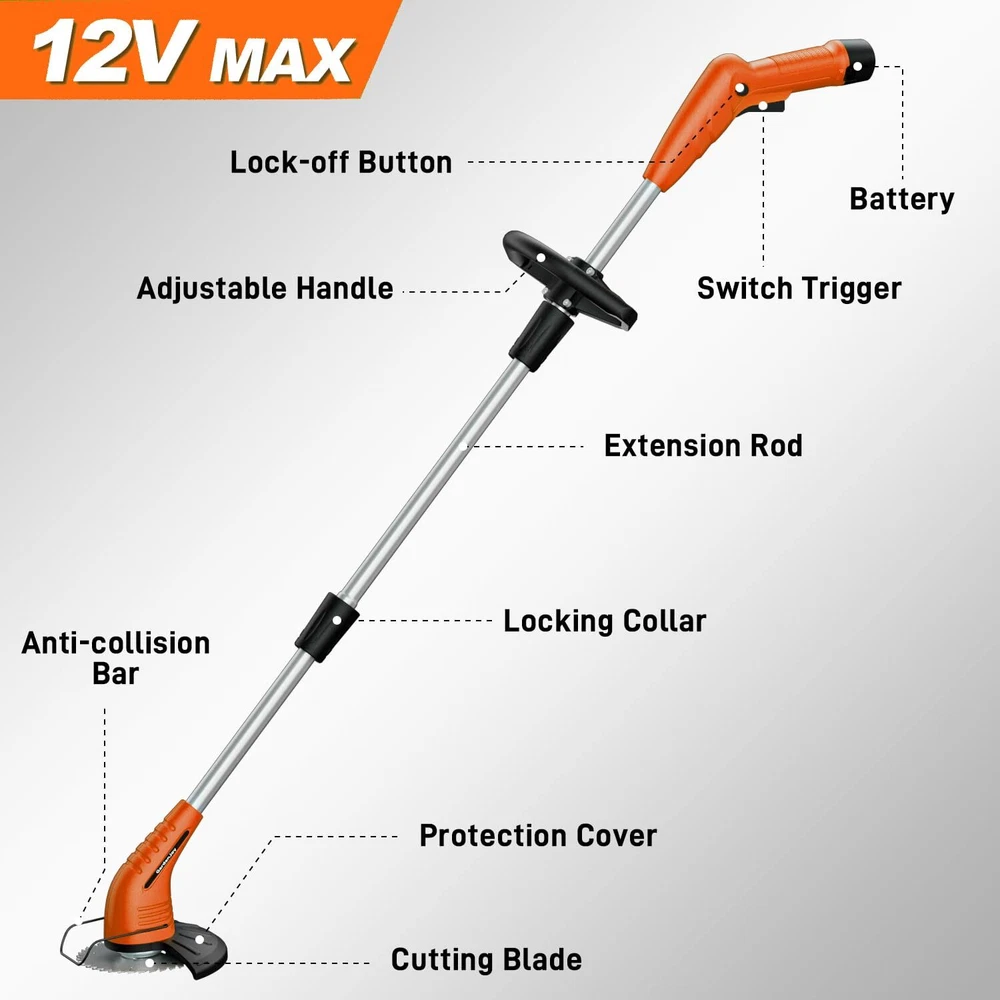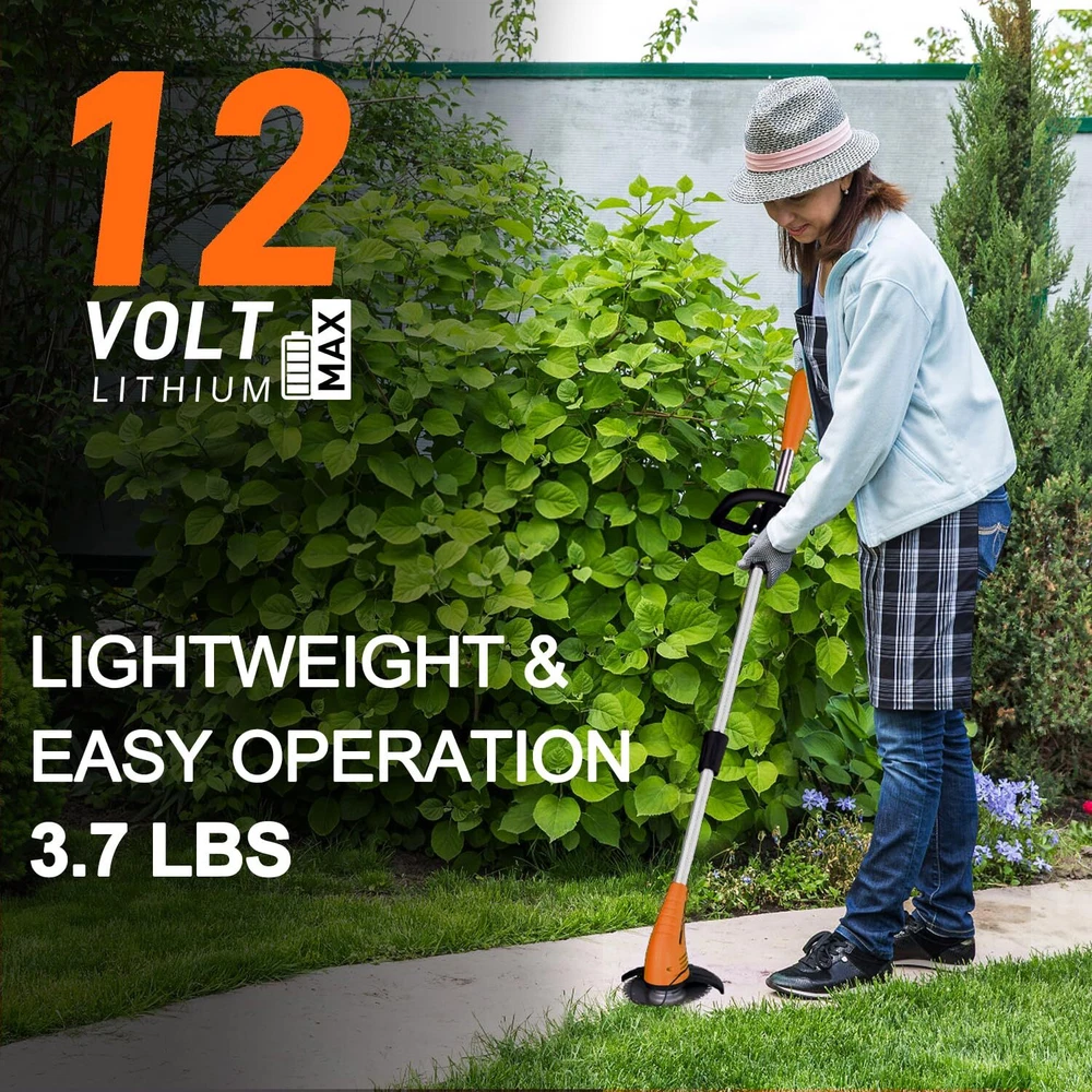Weed Wacker Battery Operated: 12V Cordless Grass Trimmer with 2.0Ah Battery, ...