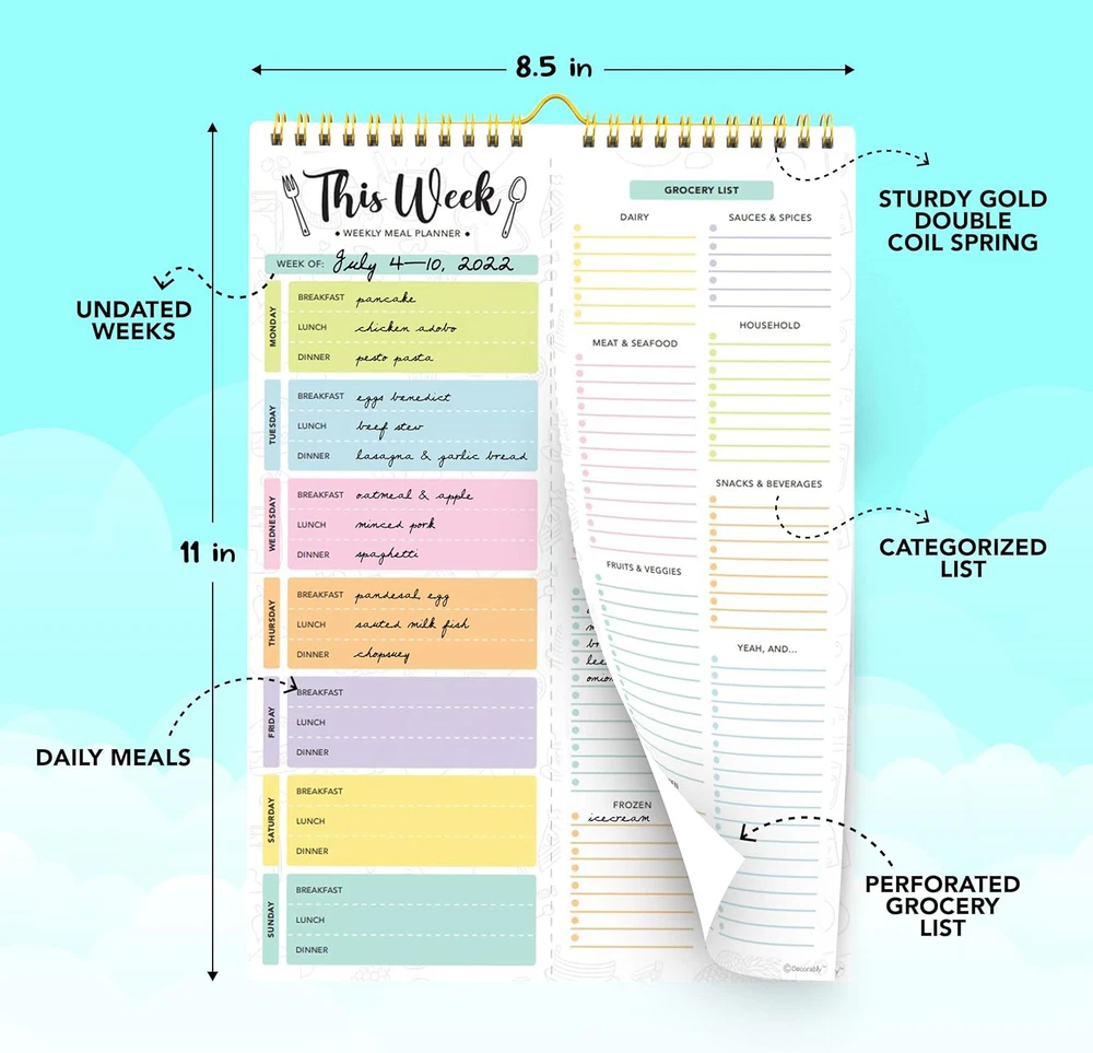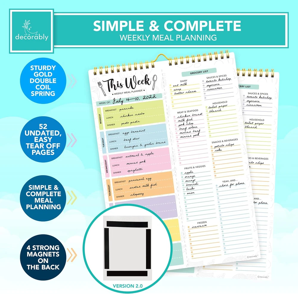 Weekly Meal Planner & Grocery List - 52 Tear-Off Sheets, 8.5x11in Pad
