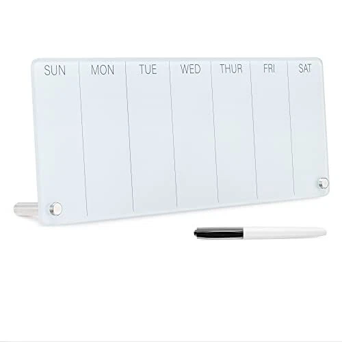 Return Policy Fast Delivery Trusted seller Weekly Whiteboard Planner - Small Dry Erase Glass Whiteboard to Do Calendar for Office Desk - Dry Erase Schedule Board - 16 x 6 Inches Product Description PLAN THE WEEK: Make note of any important meetings, remind yourself of tasks by creating a to-do list or simply organize your week, day by day, with this dry-erase whiteboard for your desk. It features every day of the week for easy planning. COMPACT: The compact design of this dry-wipe whiteboard means it takes up little space and makes it suitable for use on a desk, tabletop or counter. Make sure your weekly plan is always insight when it's needed! SPECS: The weekly planner measures 16 x 6 inches (40.5 x 15.2cm) and is made using tempered glass and stainless steel. Some assembly is required. You will also receive 1x marker pen (black). DRY ERASE: Rather than wasting pads of paper, use this dry erase board to plan your week. It can be wiped clean and used over and over again to plan every day of every week of every year! TEMPERED GLASS: Designed using tempered glass for a long-lasting and durable glass weekly planner whiteboard. The board is constructed to last for years to come. Shipping Returns Payment Shipping Shipping is FREE to all addresses other than APO/PO boxes in the lower 48 states. All our stock ships from US-based warehouses. Shipped via USPS or UPS (depending on location and package weight) Unless stated otherwise, all orders will ship within 24-72 hours of your payment being processed. Check our feedback to see the great reviews of FAST shipping we offer. Returns Seller does not accept returns Payment We currently accept payment via eBay managed payments only. Once payment is cleared, we will dispatch your shipment within 1-3 business days. Please refer to the "Shipping" tab for more information regarding shipping speed to your destination.