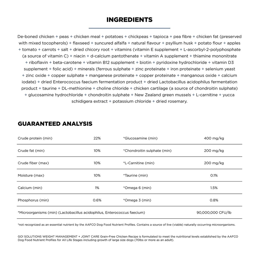 Real Poultry as the #1 Ingredient: Made with premium-quality lean protein from chicken as the #1 ingredient for a drool-worthy taste in every bite of this complete and balanced dry food Lower Fat for Healthy Weight Management: Formulated with up to 38% less fat than other recipes to support your dog's healthy weight loss or weight maintenance goals Supports Healthy Joints: Featuring functional science-backed ingredients like supplemental glucosamine and chondroitin to encourage normal cartilage repair and support healthy hips and joints to help keep your dog active and playful Fiber-Rich Ingredients for Appetite Control: Rich in premium-quality fiber from psyllium husk that aids digestion and helps keep your dog feeling full and satisfied for longer, which means fewer hunger pangs L-Carnitine for Healthy Fat Metabolism: Features supplemental L-carnitine to support healthy fat metabolism for a healthy weight and heart in adult and senior dogs