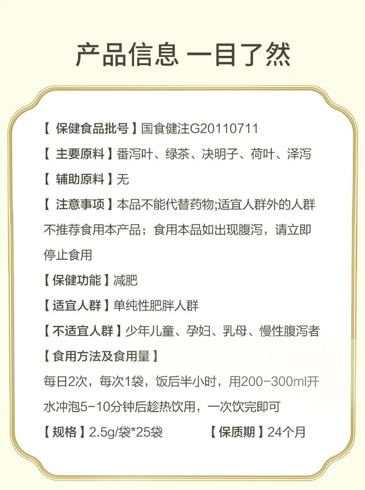 番泻叶、绿茶、决明子、荷叶、泽泻